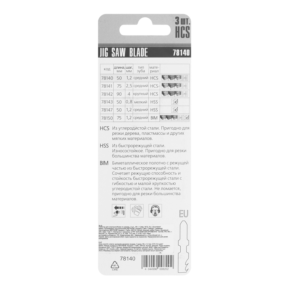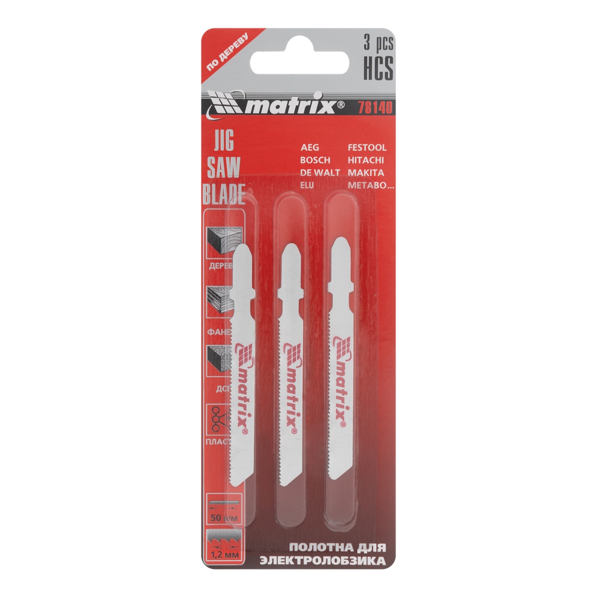 Полотна для электролобзика по дереву, 3 шт, 50 х 1.2 мм, HCS, EU- хвостовик Matrix