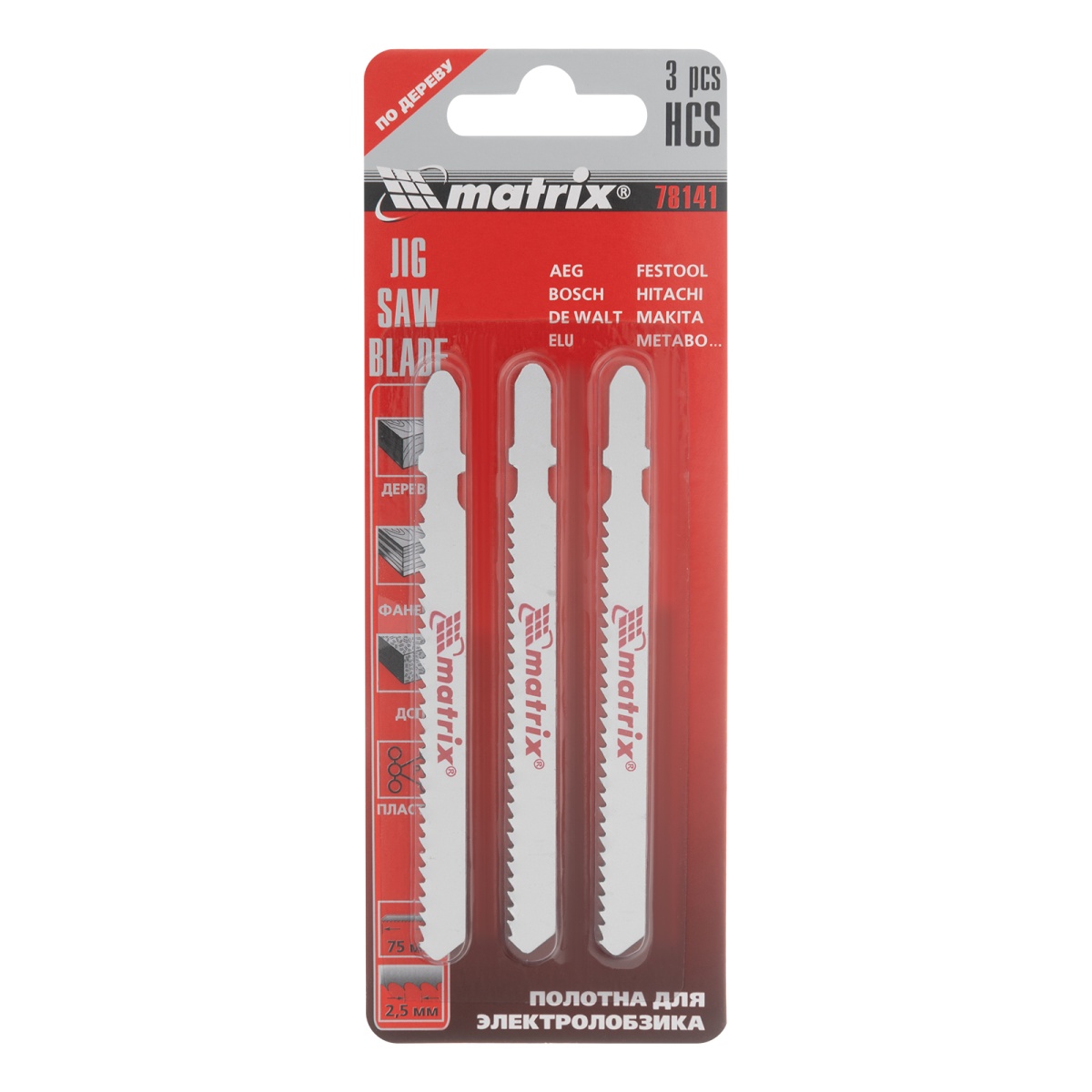 Полотна для электролобзика по дереву, 3 шт, 75 х 2.5 мм, HCS, EU- хвостовик Matrix