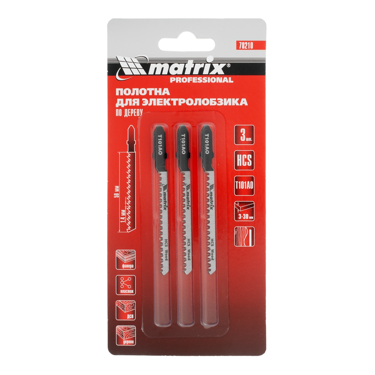 Полотна для электролобзика по дереву, 3 шт, T101AO, 50 x 1.4 мм, фигурный рез Matrix Professional
