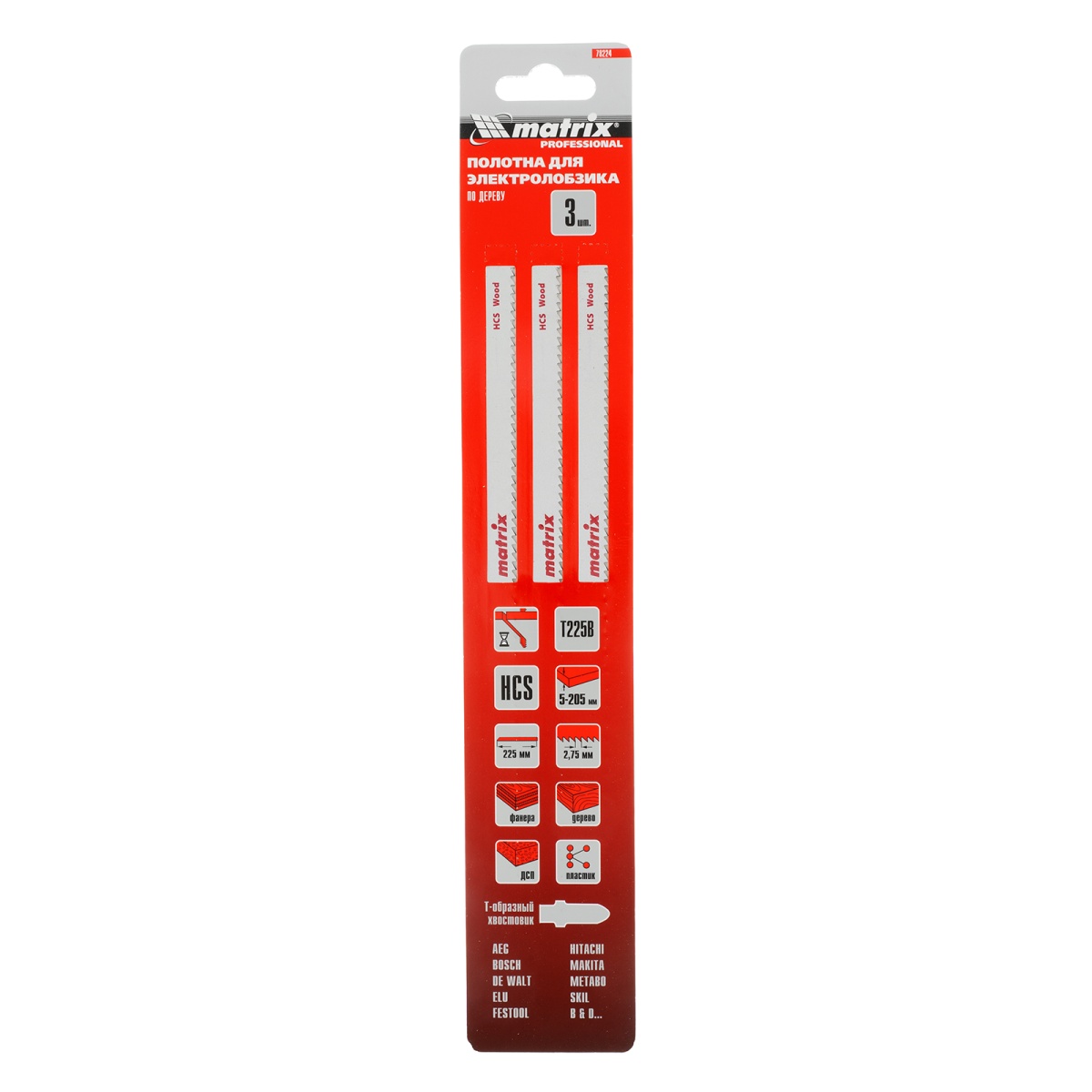 Купить Полотна для электролобзика по дереву, 3 шт, T225B, 225 x 2, 75 мм, HCS Matrix V5733 по лучшей цене с доставкой - интернет магазин №1 в России