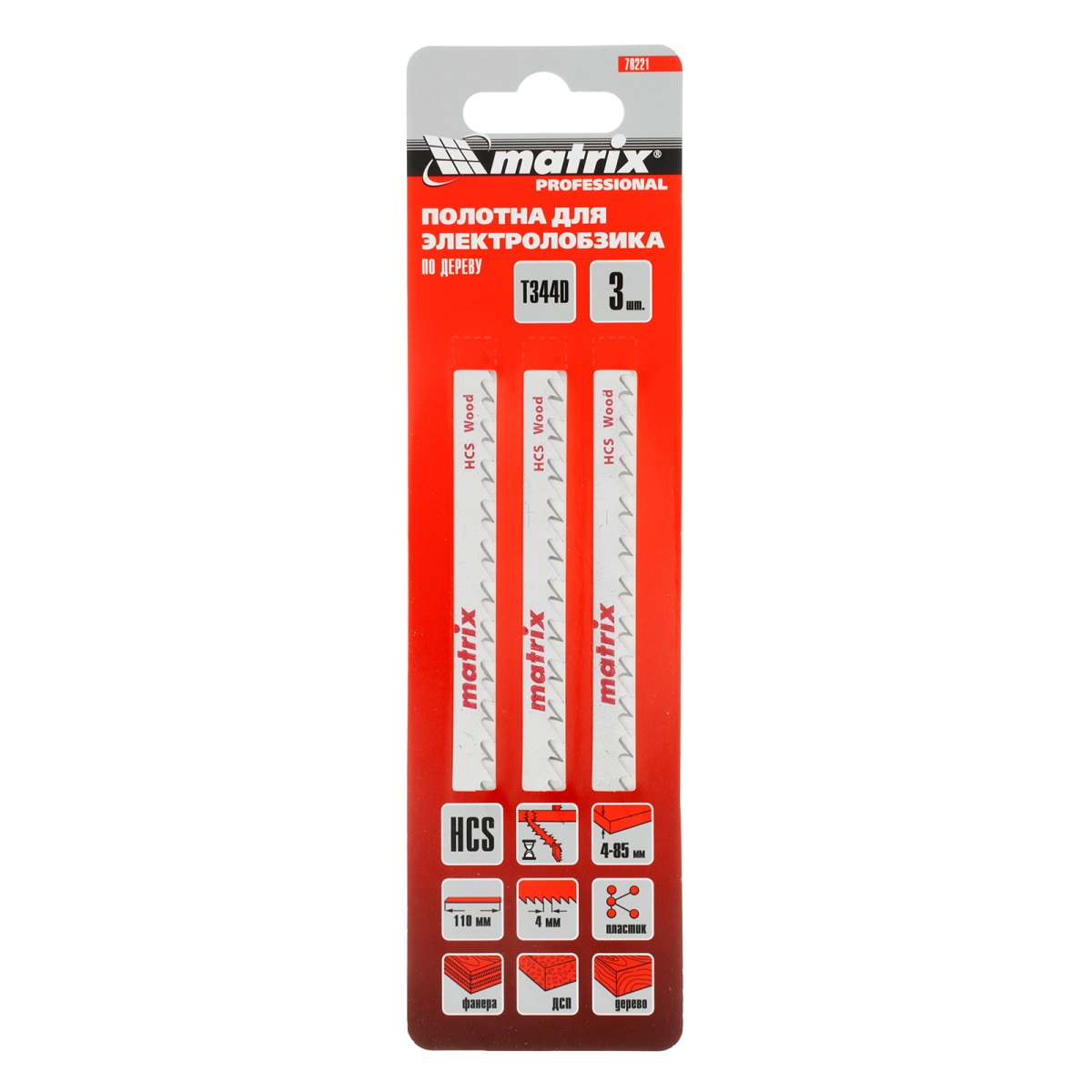 Полотна для электролобзика по дереву, 3 шт, T344D, 110 x 4 мм, HCS Matrix