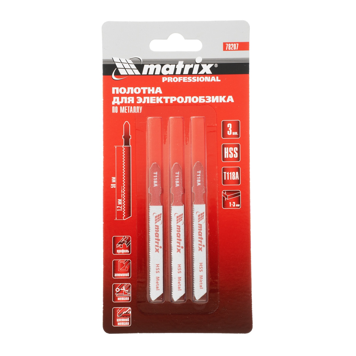 Купить Полотна для электролобзика по металлу, 3 шт, T118A, 50 х 1.2 мм, HSS Matrix Professional V5763 по лучшей цене с доставкой - интернет магазин №1 в России