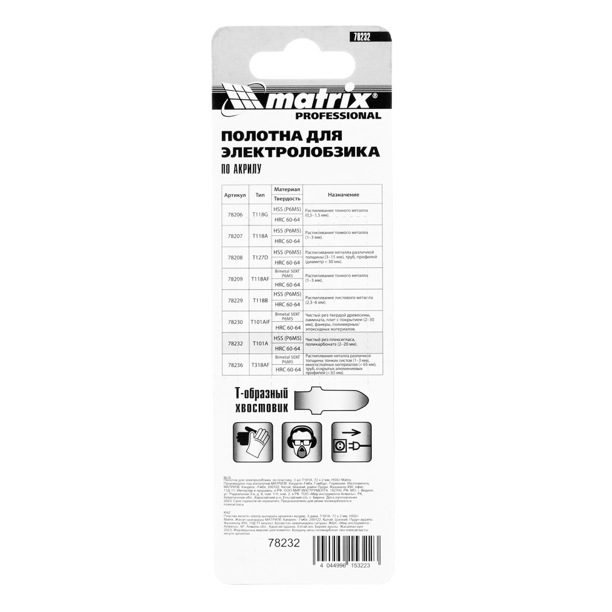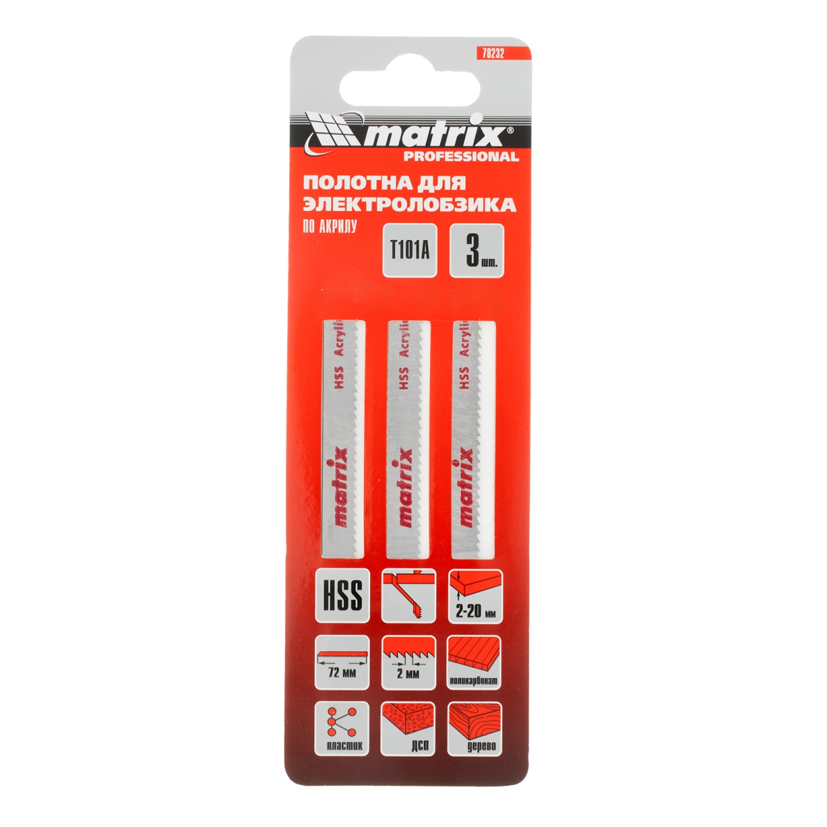 Полотна для электролобзика по пластику, 3 шт, T101A, 72 x 2 мм, HSS Matrix