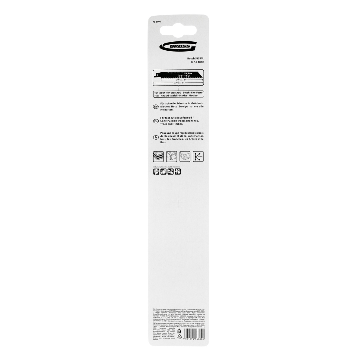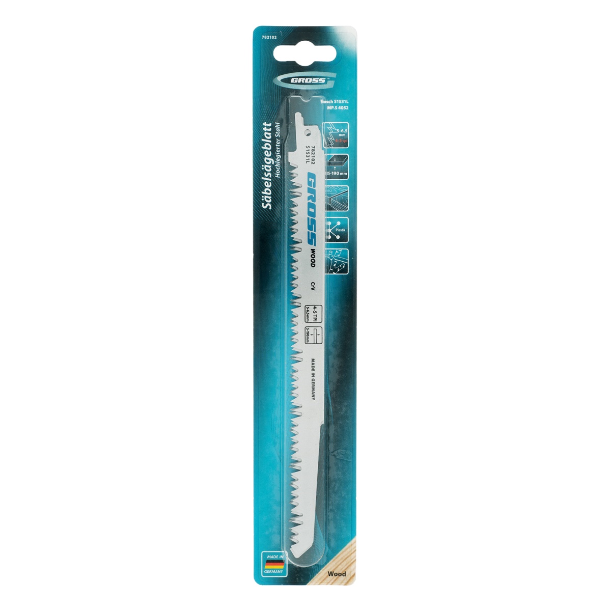 Полотна по дереву для сабельной пилы 4052 - S1531L, 210 x 5-6.5 мм, фигурный рез, 2 шт. Gross