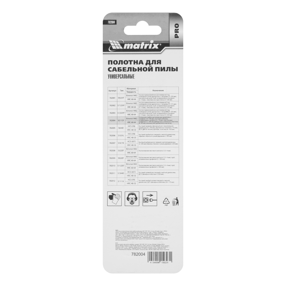 Купить Полотна универсальные для сабельной пилы S611DF 125/4.3 мм, Bimetal, 2 шт, Pro Matrix V5779 по лучшей цене с доставкой - интернет магазин №1 в России