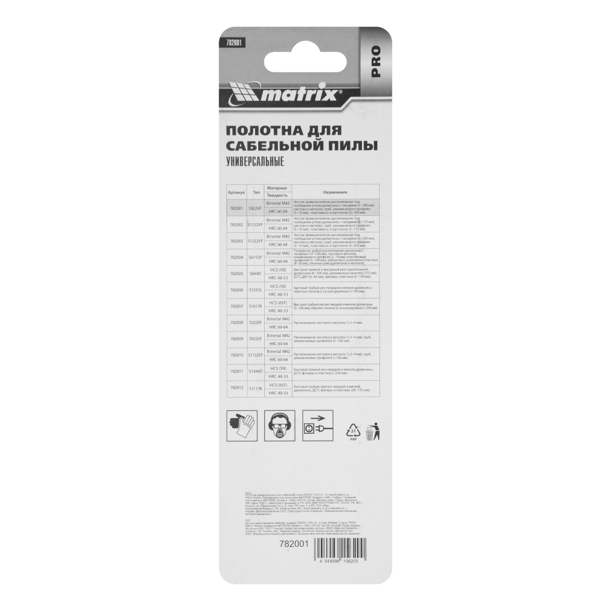 Купить Полотна универсальные для сабельной пилы S922VF, 125/1.8-2.5 мм, Bimetal, 2 шт, Pro Matrix V5780 по лучшей цене с доставкой - интернет магазин №1 в России