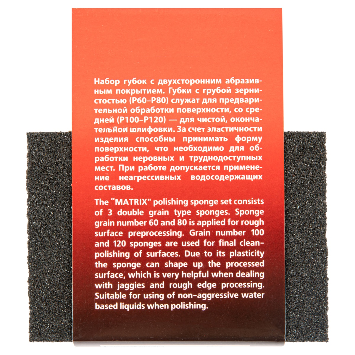 Губка для шлифования, 100 х 70 х 25 мм, мягкая, 3 шт, P 60/80, P 60/100, P 80/120 Matrix