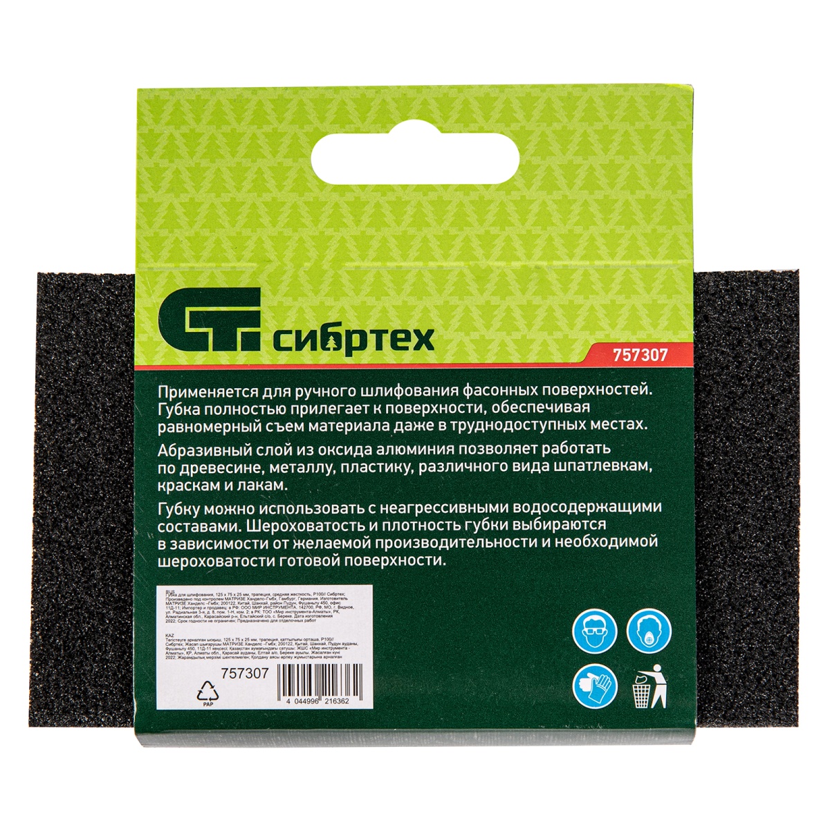 Купить Губка для шлифования, 125 х 75 х 25 мм, трапеция, средняя жесткость, P 100 Сибртех V1555 по лучшей цене с доставкой - интернет магазин №1 в России