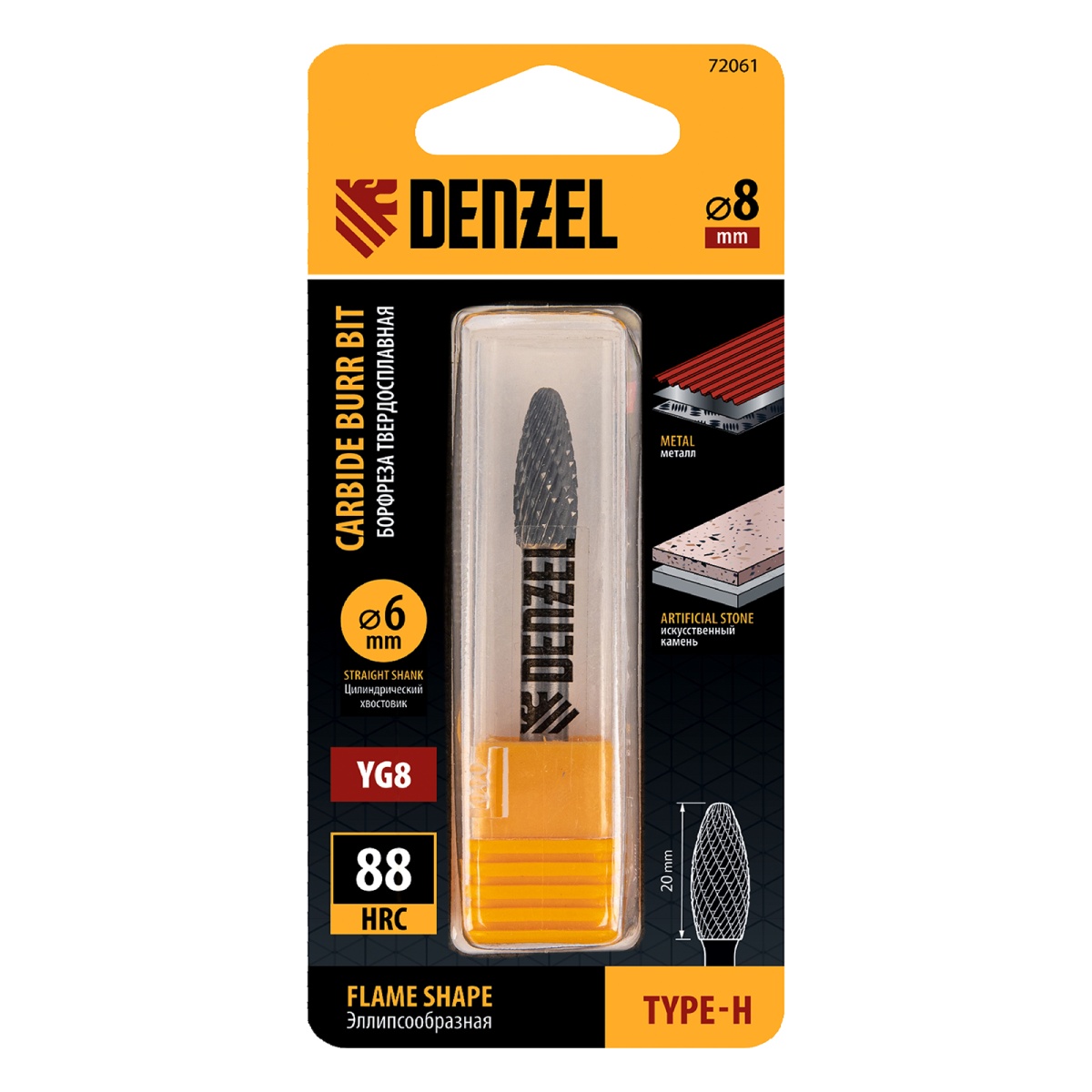 Купить Борфреза по металлу твердосплавная, элипсообразная, тип-H, 8 мм Denzel V739 по лучшей цене с доставкой - интернет магазин №1 в России