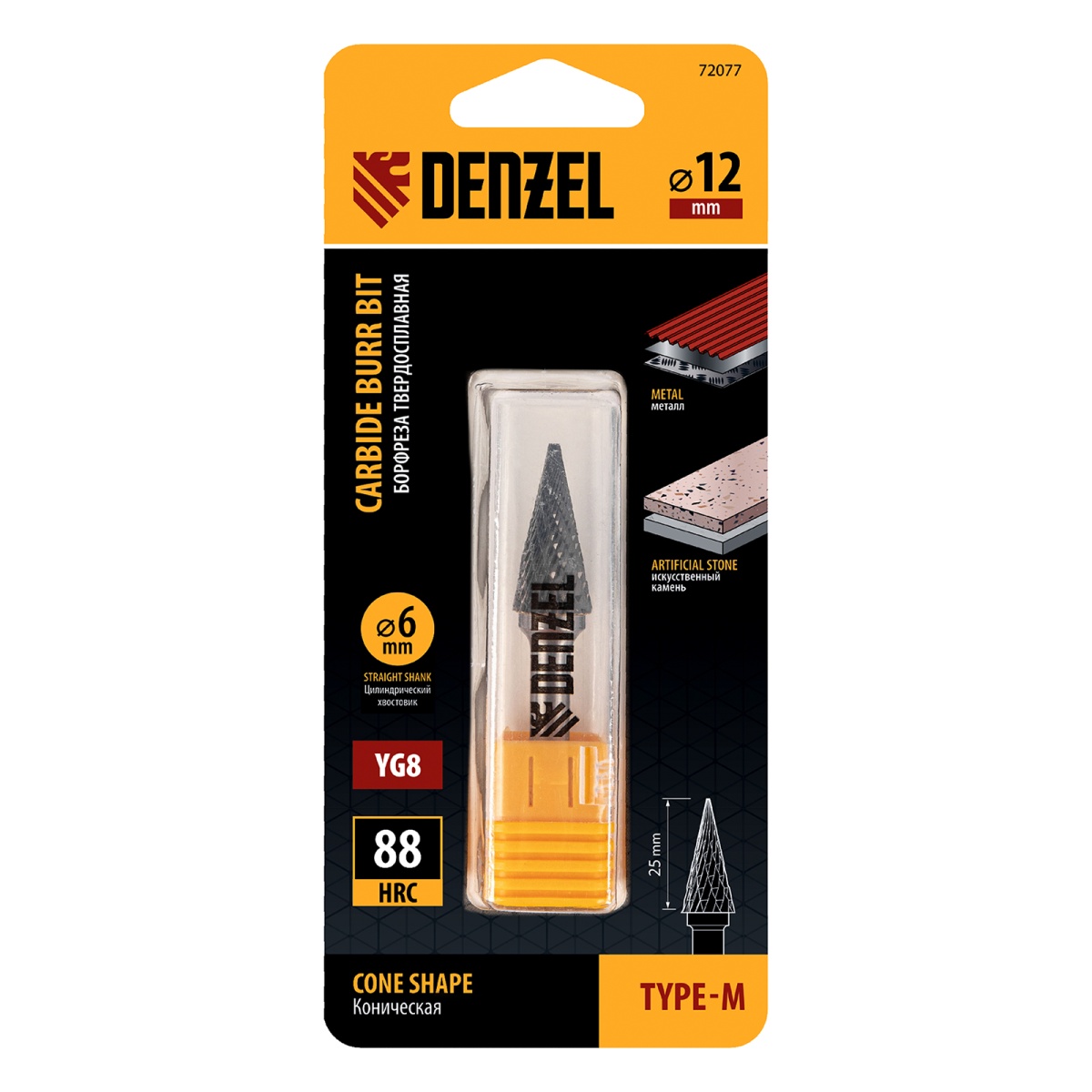 Купить Борфреза по металлу твердосплавная, коническая, тип-M, 12 мм Denzel V726 по лучшей цене с доставкой - интернет магазин №1 в России