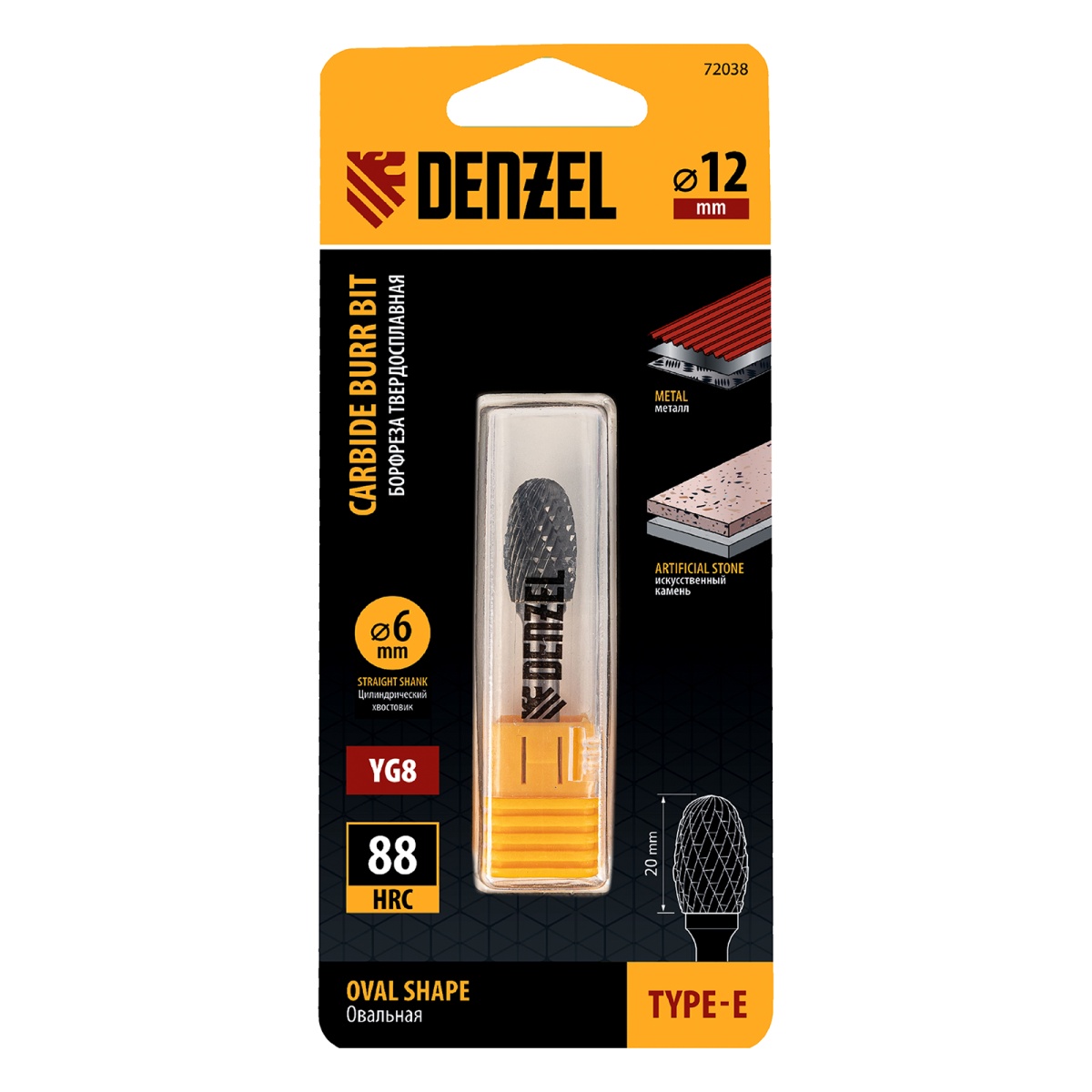 Купить Борфреза по металлу твердосплавная, овальная, тип-E, 12 мм Denzel V728 по лучшей цене с доставкой - интернет магазин №1 в России