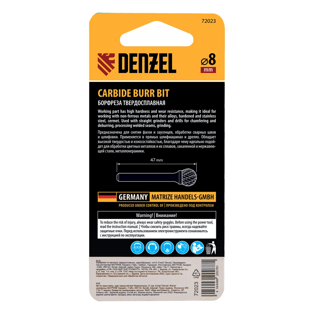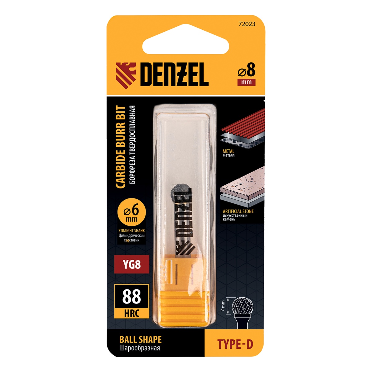 Купить Борфреза по металлу твердосплавная, шарообразная, тип-D, 8 мм Denzel V737 по лучшей цене с доставкой - интернет магазин №1 в России