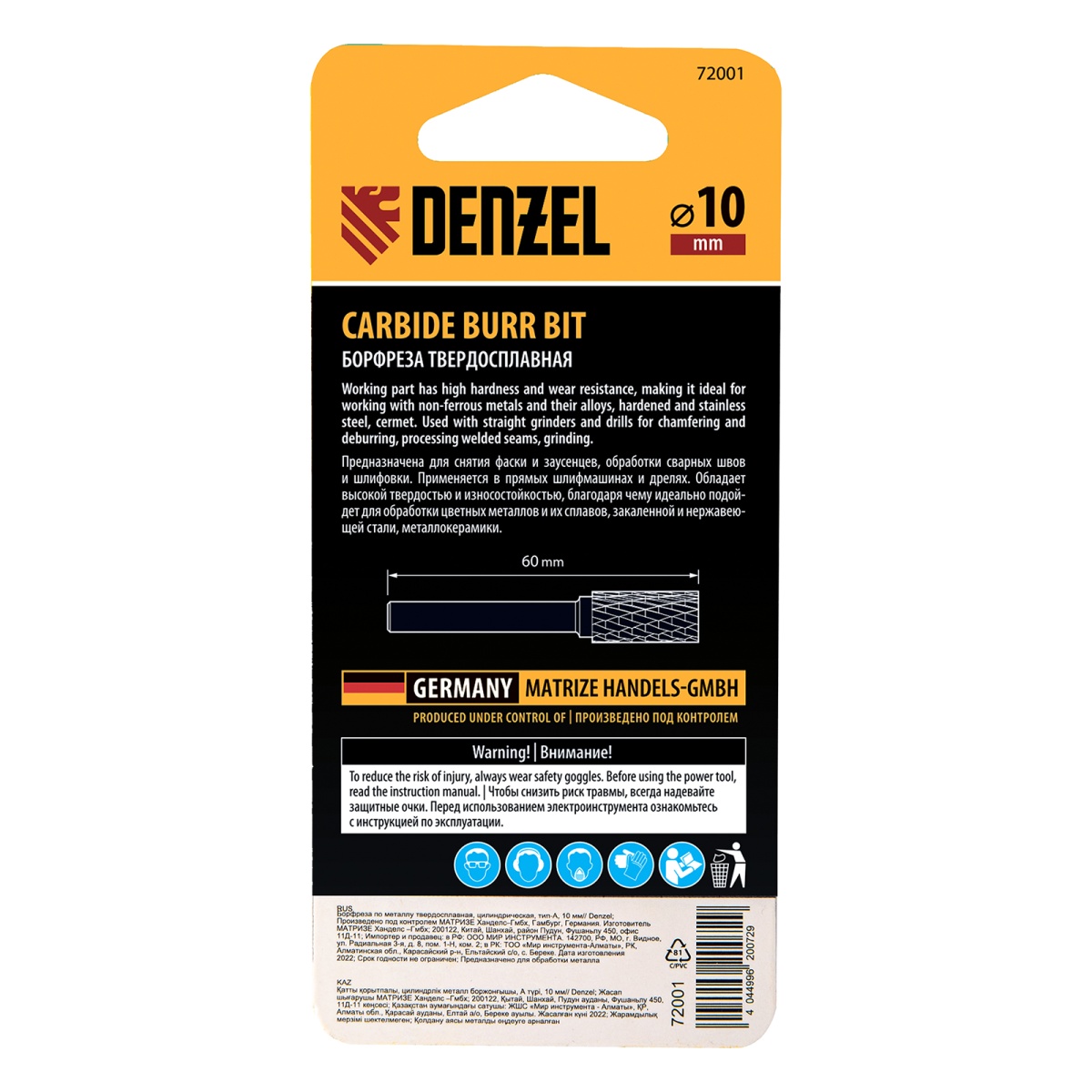 Купить Борфреза по металлу твердосплавная, цилиндрическая, тип-А, 10 мм Denzel V734 по лучшей цене с доставкой - интернет магазин №1 в России