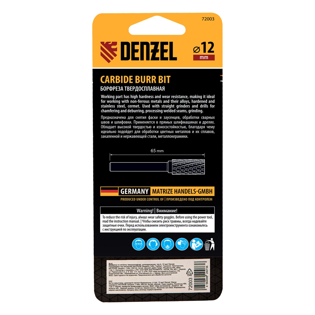 Купить Борфреза по металлу твердосплавная, цилиндрическая, тип-А, 12 мм Denzel V735 по лучшей цене с доставкой - интернет магазин №1 в России
