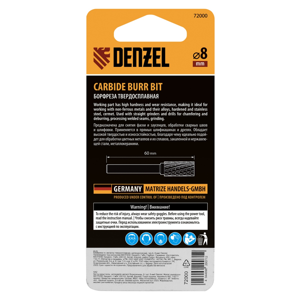 Купить Борфреза по металлу твердосплавная, цилиндрическая, тип-А, 8 мм Denzel V736 по лучшей цене с доставкой - интернет магазин №1 в России