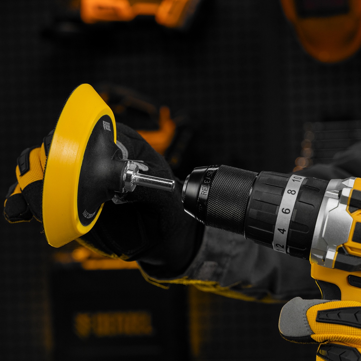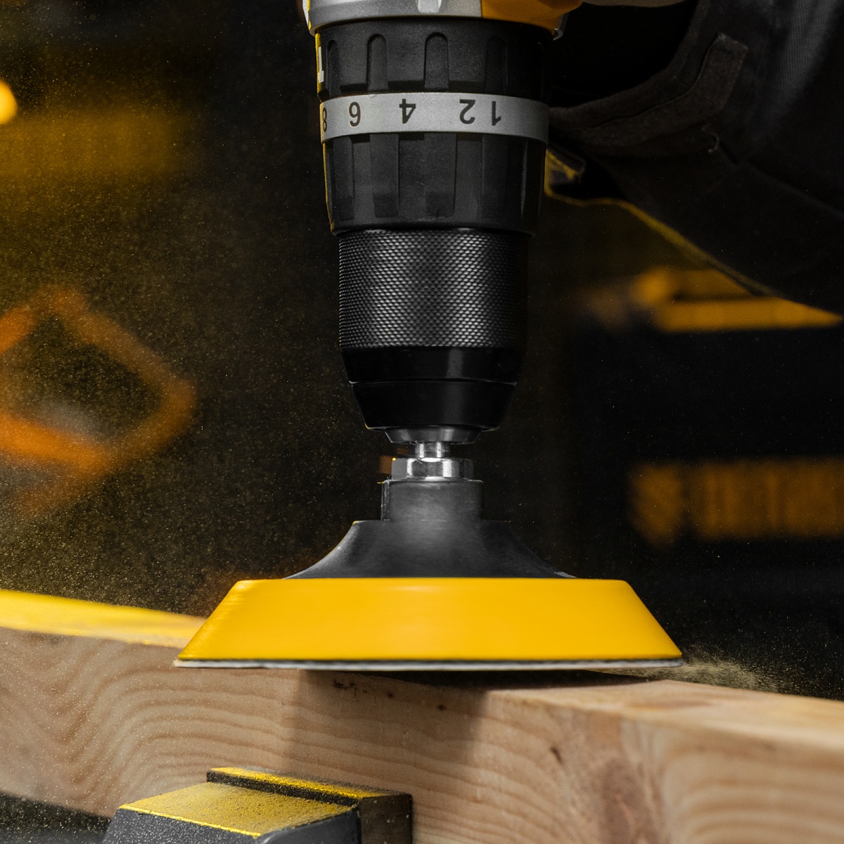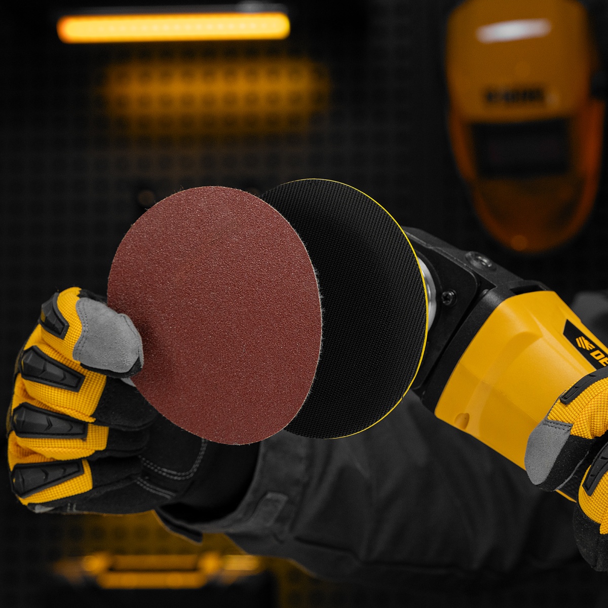 Тарелка опорная для дрели и УШМ с липучкой, 115 мм, мягкая, с адаптером c М14 на d8 Denzel