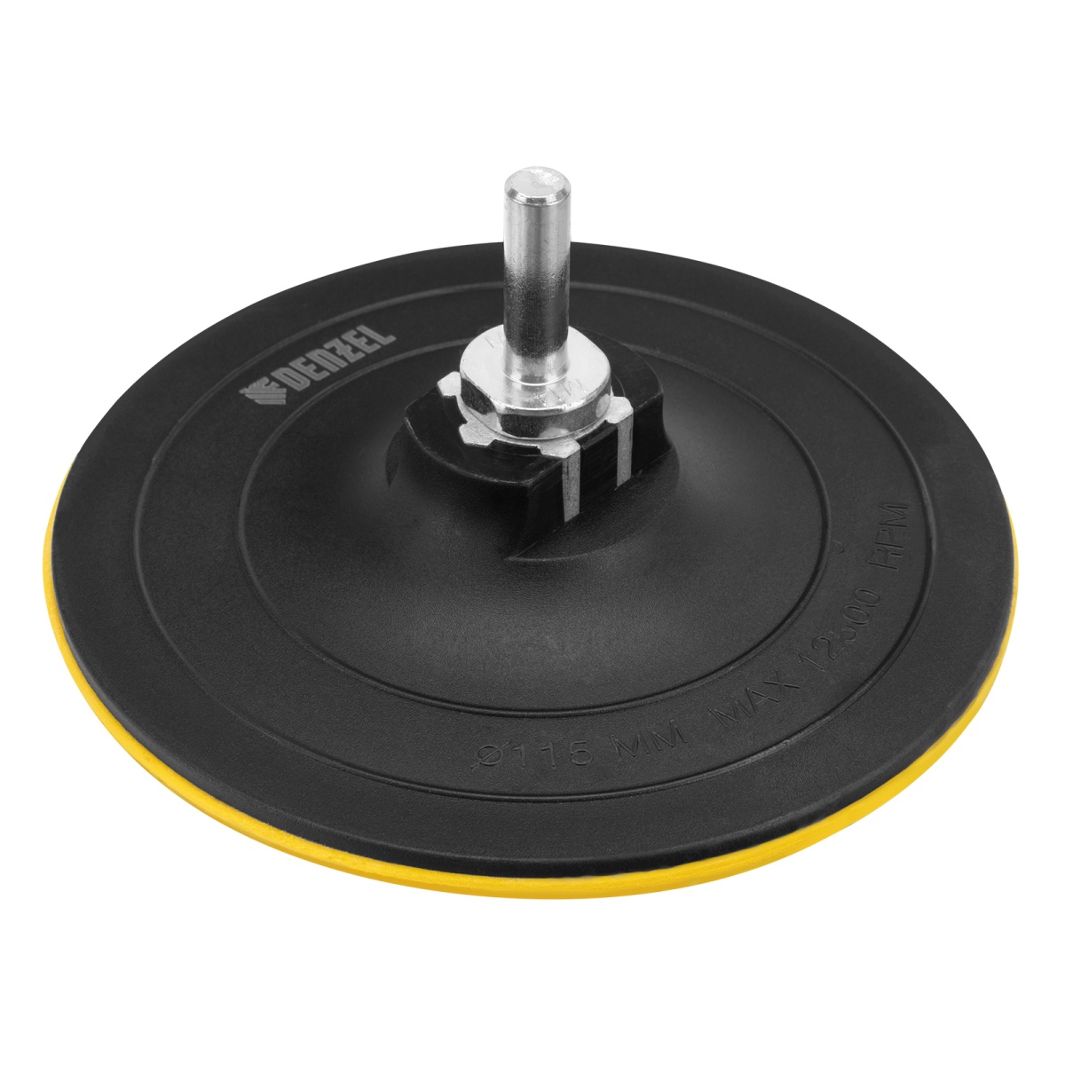 Тарелка опорная для дрели и УШМ с липучкой, 115 мм, твердая, с адаптером c М14 на d8 Denzel