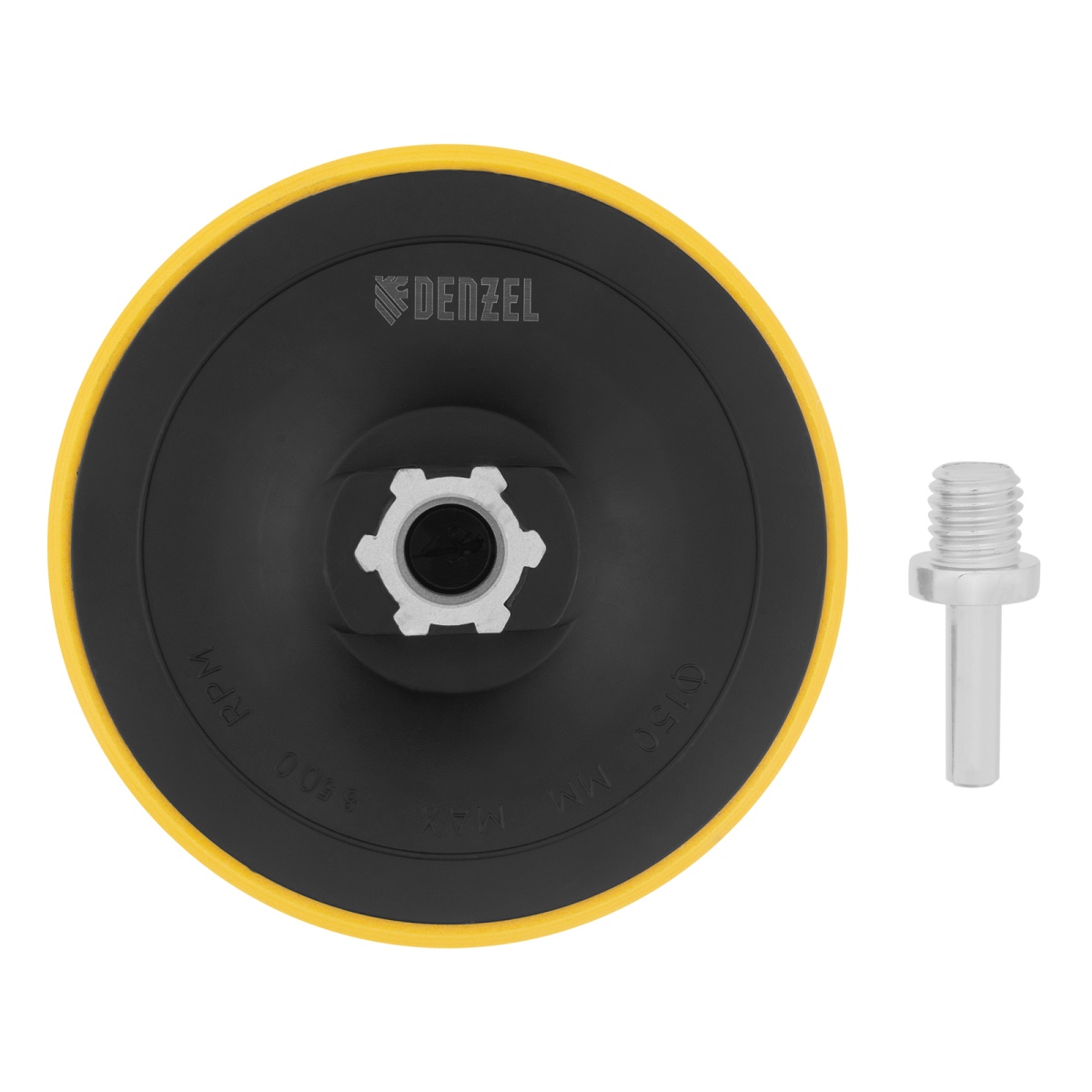Купить Тарелка опорная для дрели и УШМ с липучкой, 150 мм, стандартная, с адаптером c М14 на d8 Denzel V7053 по лучшей цене с доставкой - интернет магазин №1 в России