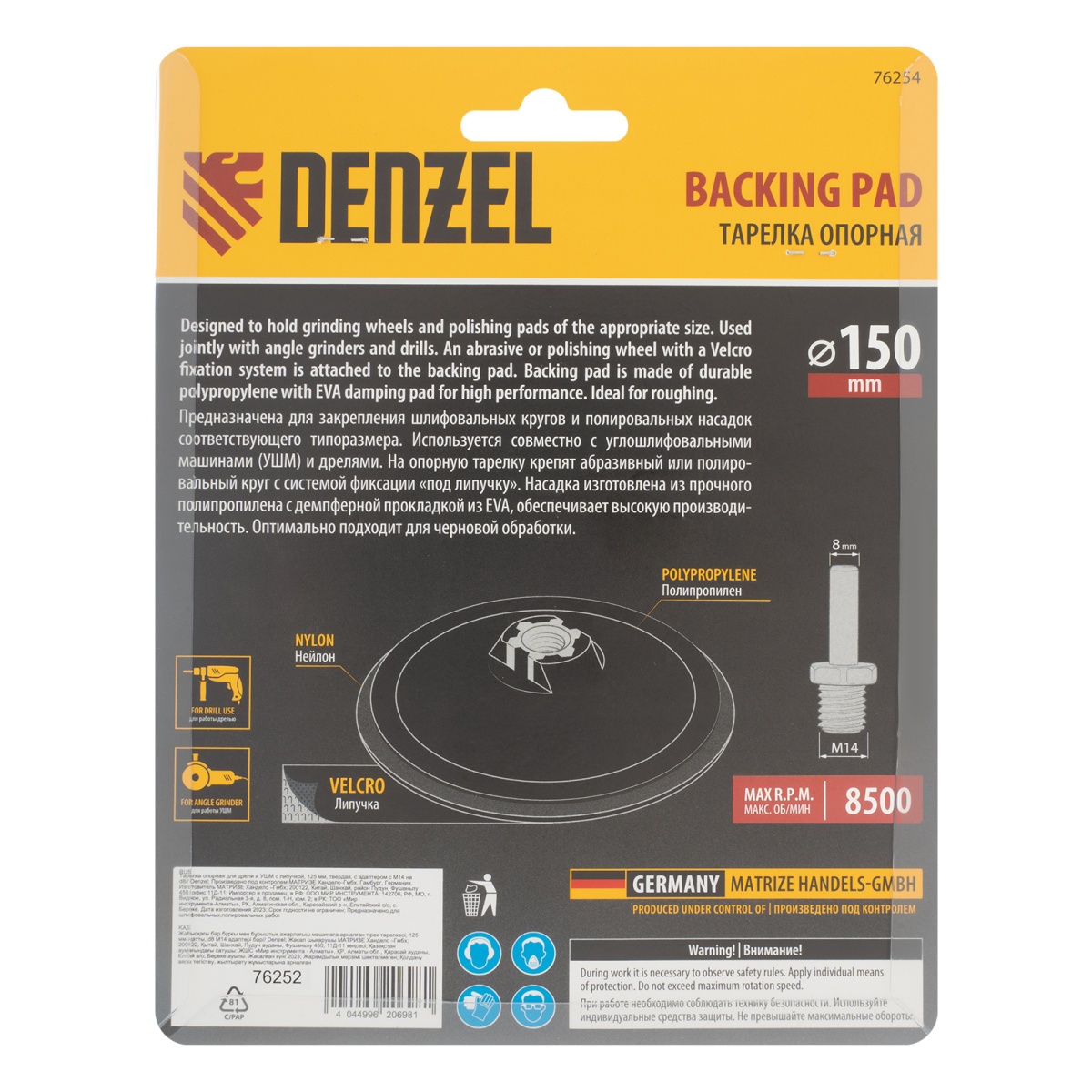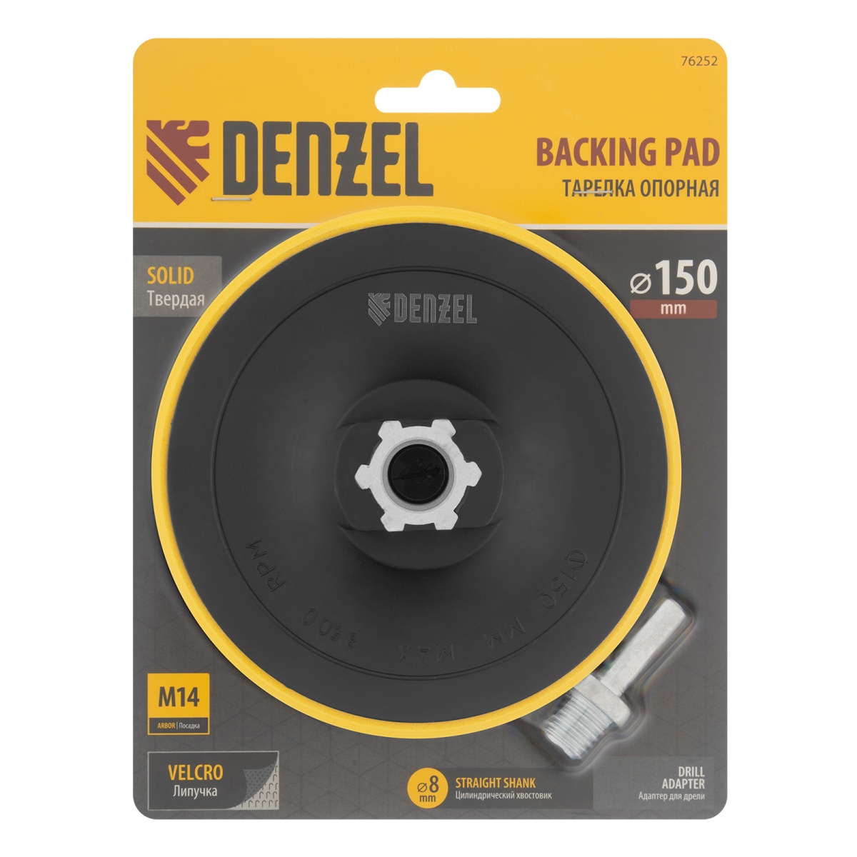 Тарелка опорная для дрели и УШМ с липучкой, 150 мм, стандартная, с адаптером c М14 на d8 Denzel
