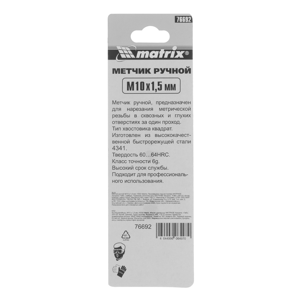 Купить Метчик ручной М10 х 1.5 мм, Р6М5 Matrix V3861 по лучшей цене с доставкой - интернет магазин №1 в России