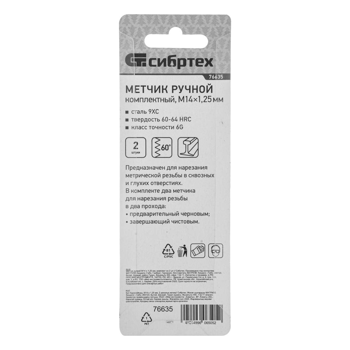 Купить Метчик ручной М14 х 1.25 мм, комплект из 2 шт Сибртех V3867 по лучшей цене с доставкой - интернет магазин №1 в России