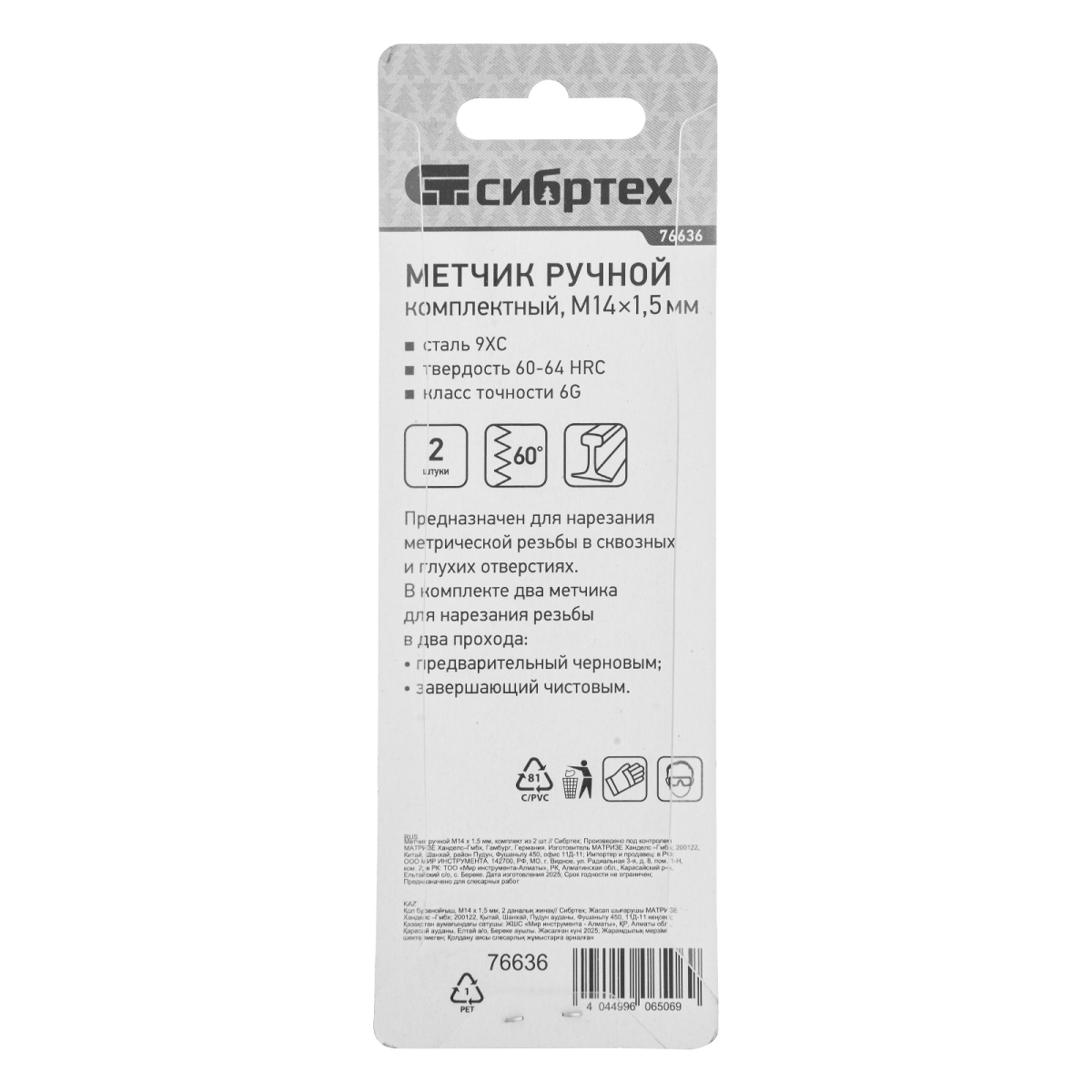 Купить Метчик ручной М14 х 1.5 мм, комплект из 2 шт Сибртех V3868 по лучшей цене с доставкой - интернет магазин №1 в России