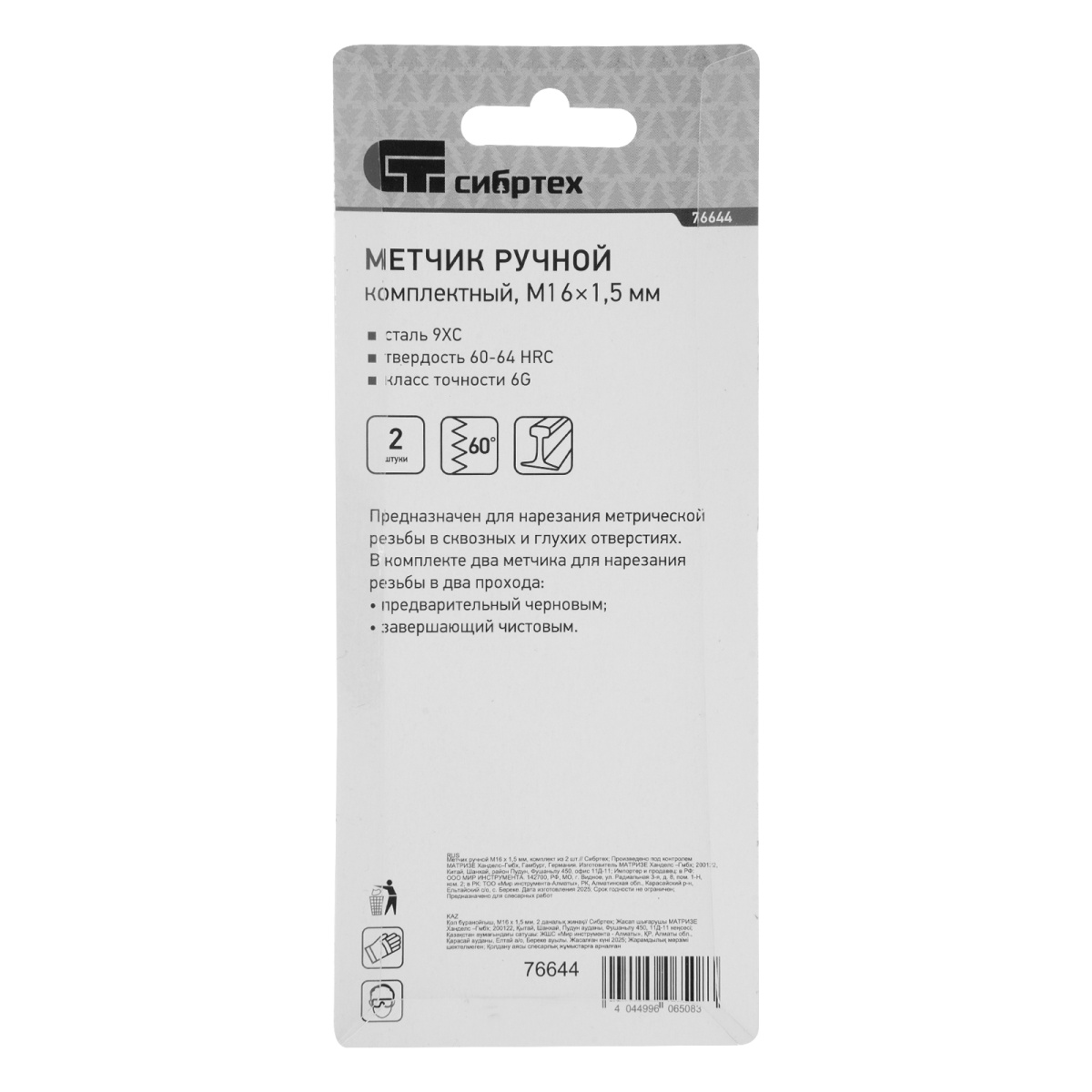 Купить Метчик ручной М16 х 1.5 мм, комплект из 2 шт Сибртех V3870 по лучшей цене с доставкой - интернет магазин №1 в России