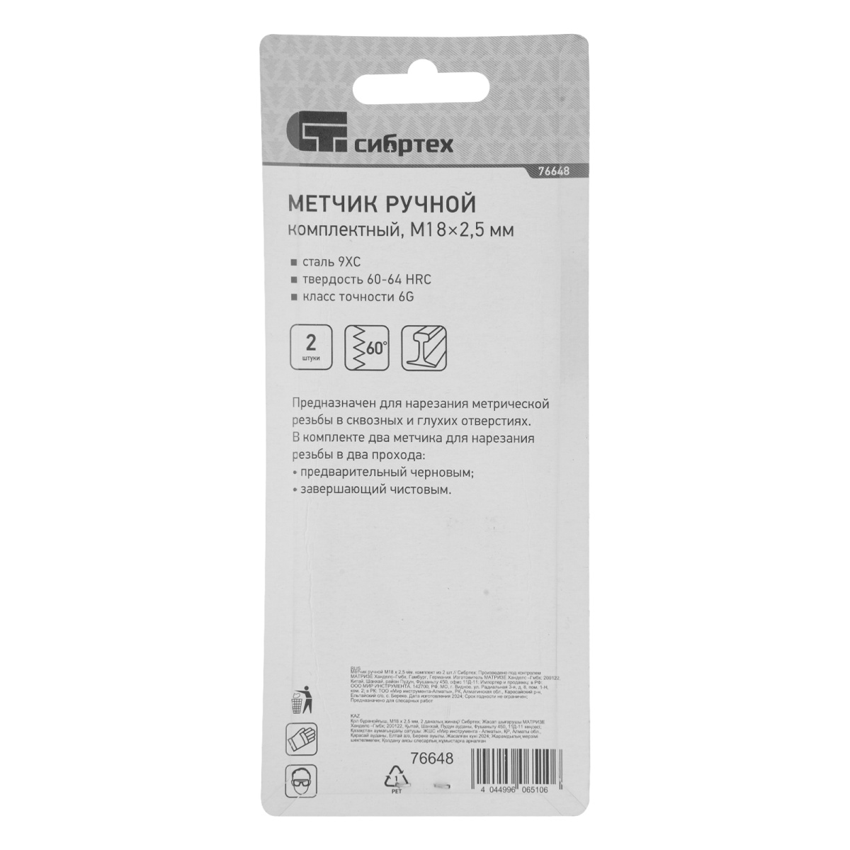 Купить Метчик ручной М18 х 2.5 мм, комплект из 2 шт Сибртех V3872 по лучшей цене с доставкой - интернет магазин №1 в России