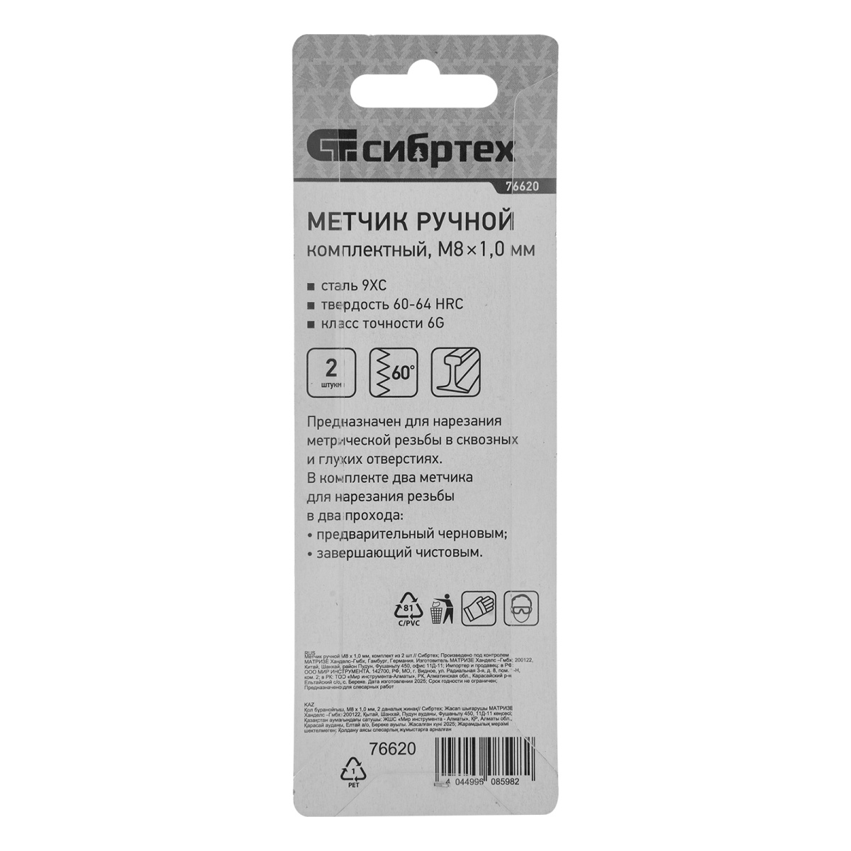 Купить Метчик ручной М8 х 1 мм, комплект из 2 шт Сибртех V3884 по лучшей цене с доставкой - интернет магазин №1 в России