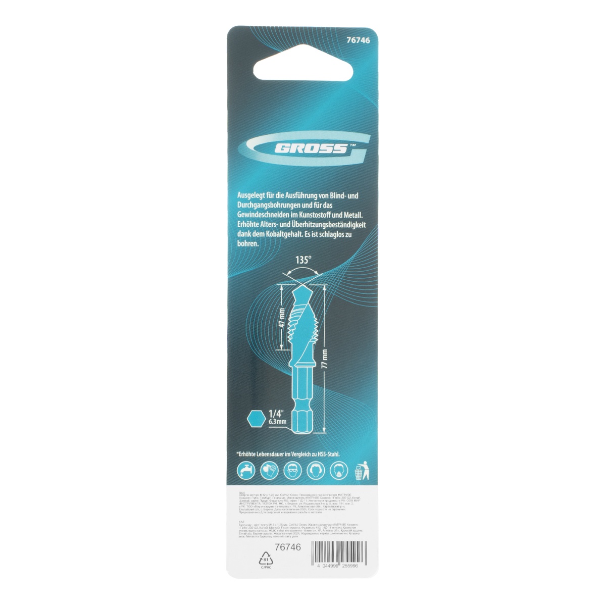 Купить Сверло-метчик М12 х 1,25 мм, Co5%// Gross V6564 по лучшей цене с доставкой - интернет магазин №1 в России