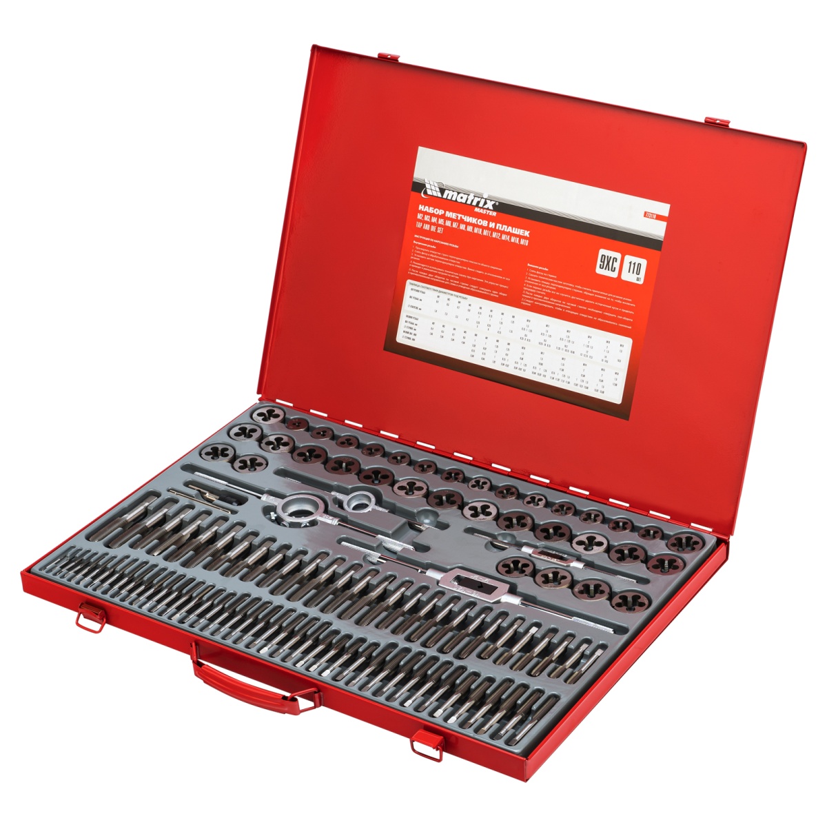 Купить Набор метчиков и плашек М2-М18, 110 шт, металлический кейс Matrix V4420 по лучшей цене с доставкой - интернет магазин №1 в России
