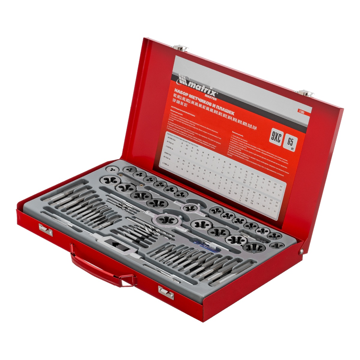 Купить Набор метчиков и плашек М2-М20, 65 шт, металлический кейс Matrix V4421 по лучшей цене с доставкой - интернет магазин №1 в России