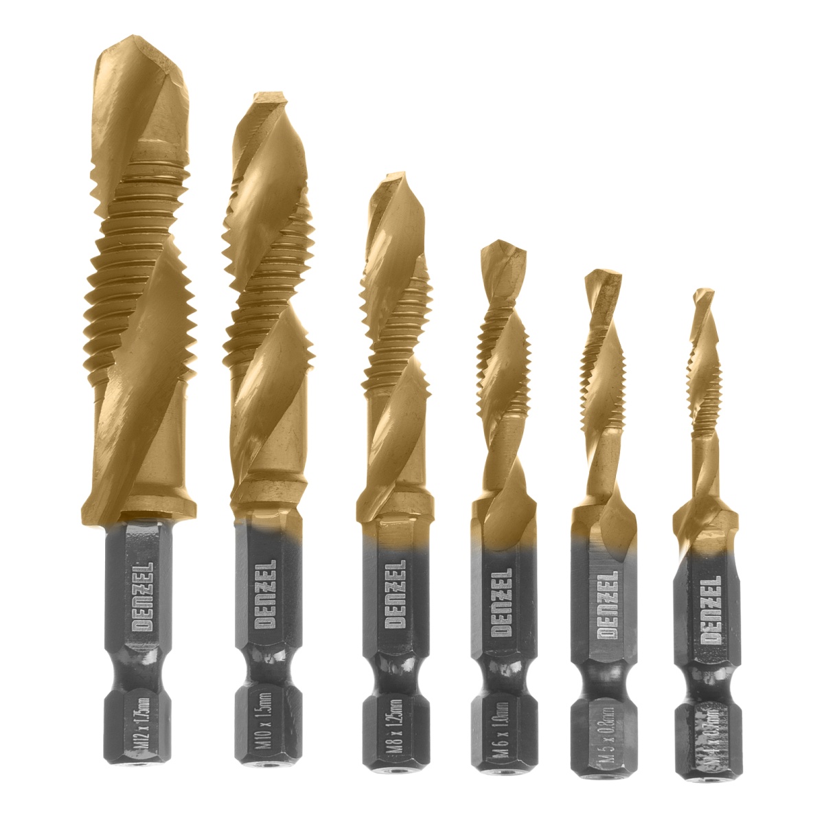 Наличие клапана для сброса давления Набор сверл-метчиков, М4-М12, Р6М5 // Denzel