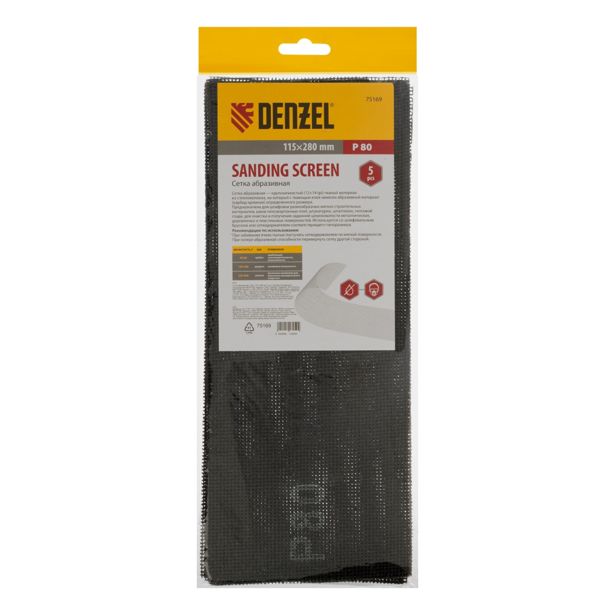 Купить Сетка абразивная, P 80, 115 х 280 мм, 5 шт Denzel V6662 по лучшей цене с доставкой - интернет магазин №1 в России