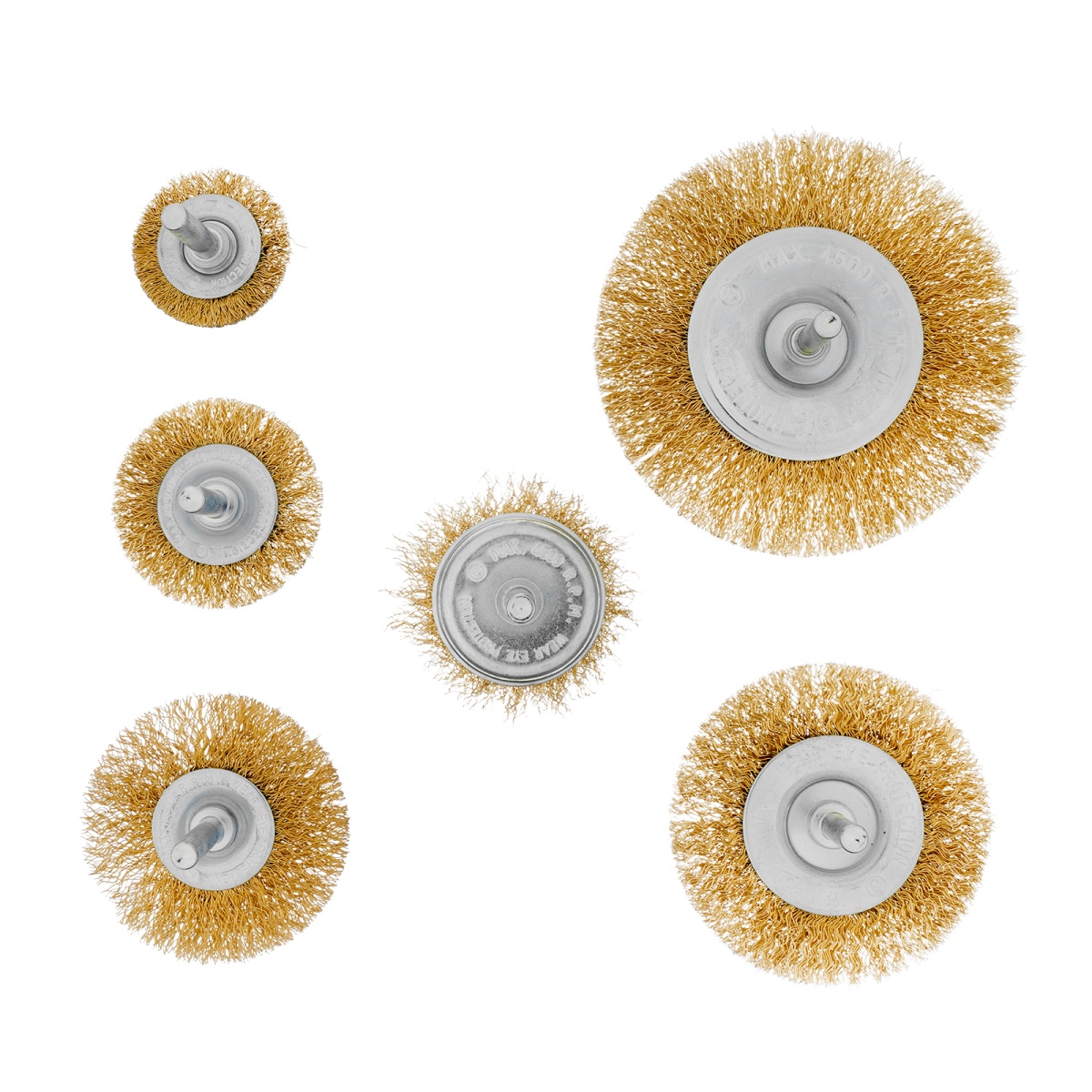 Купить Набор щеток для дрели, 6 шт, 5 плоских 40-50-65-75-100 мм + 1 "чашка" 50 мм, со шпильками Matrix V4640 по лучшей цене с доставкой - интернет магазин №1 в России