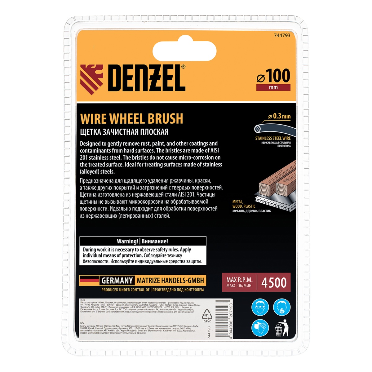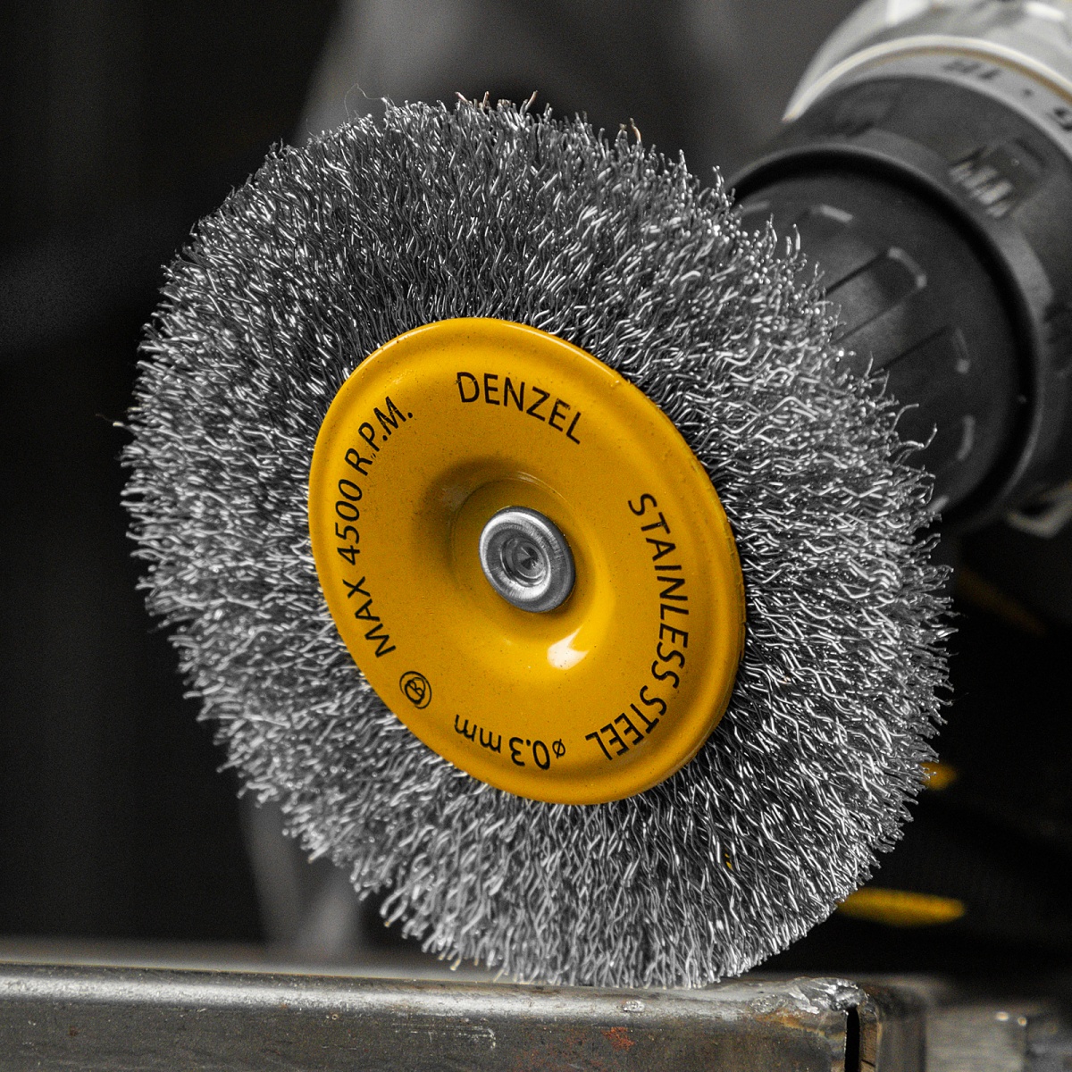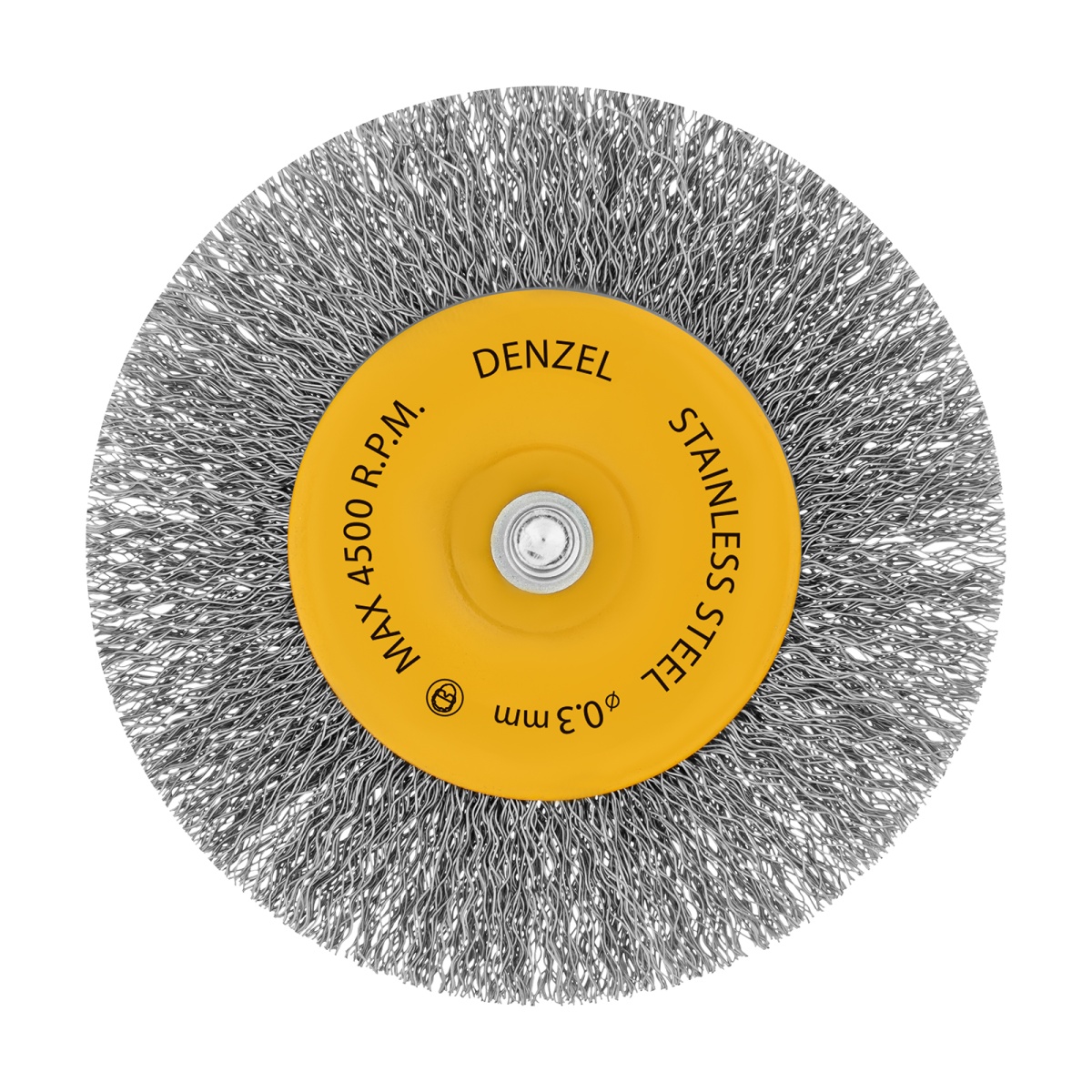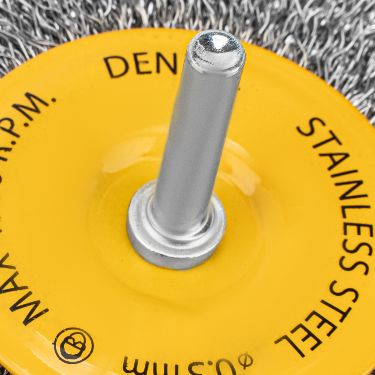 Наличие клапана для сброса давления Щетка для дрели 100 мм, Плоская, со шпилькой, нержавеющая витая проволока Denzel