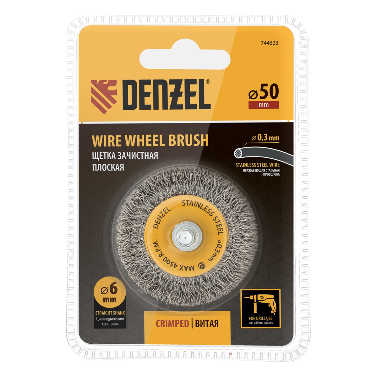 Купить Щетка для дрели, 50 мм, Плоская, со шпилькой, нержавеющая витая проволока Denzel V8048 по лучшей цене с доставкой - интернет магазин №1 в России