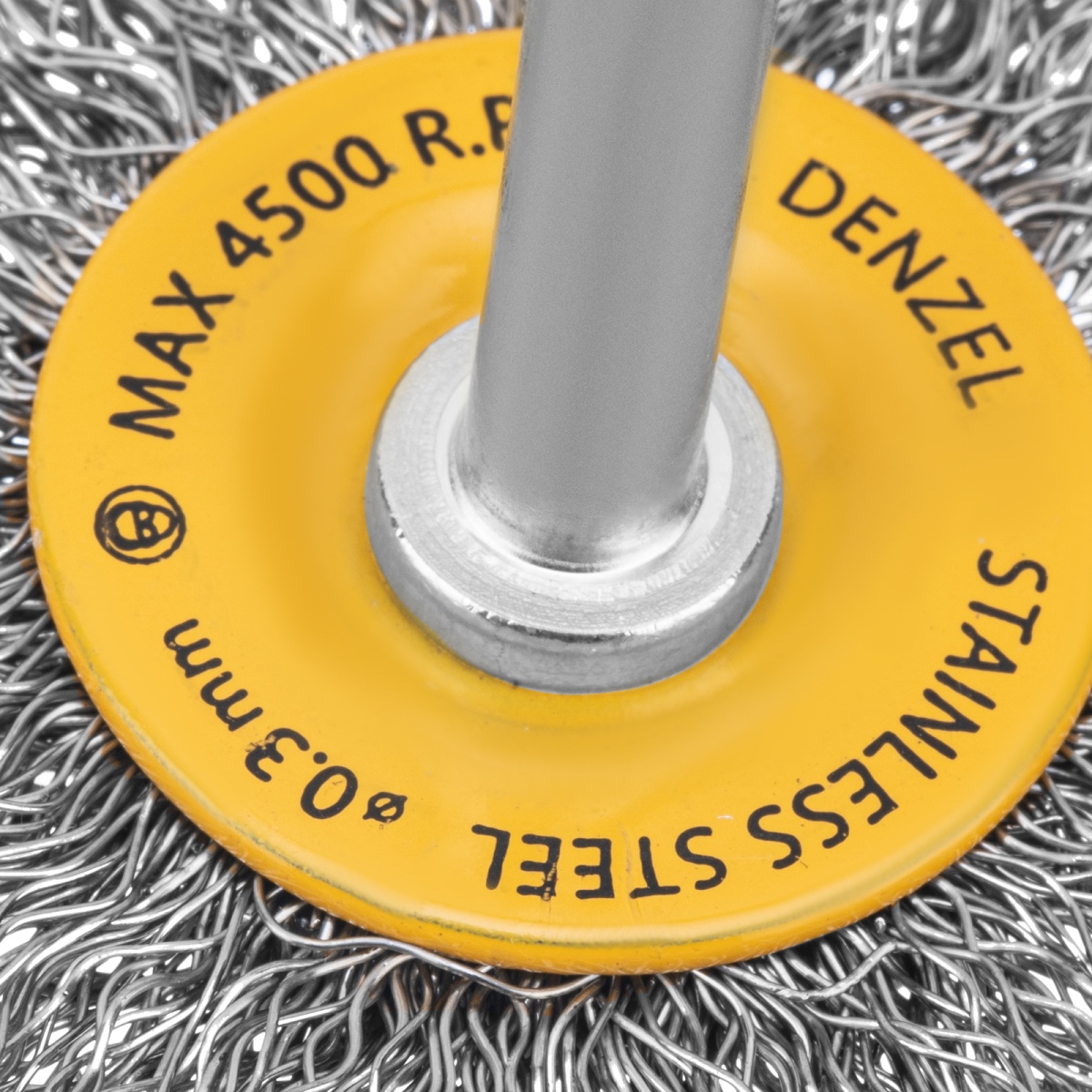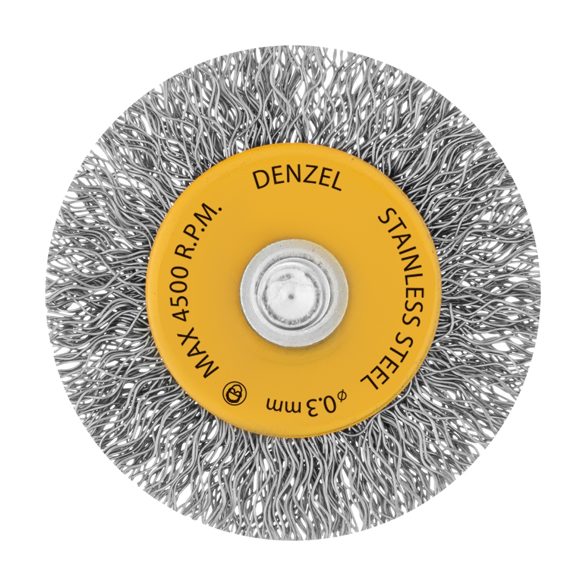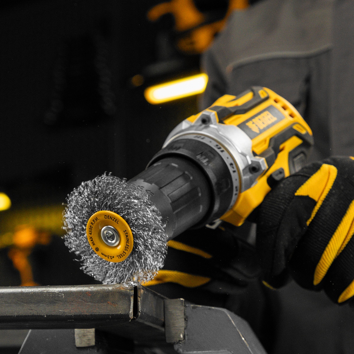 Щетка для дрели, 50 мм, Плоская, со шпилькой, нержавеющая витая проволока Denzel