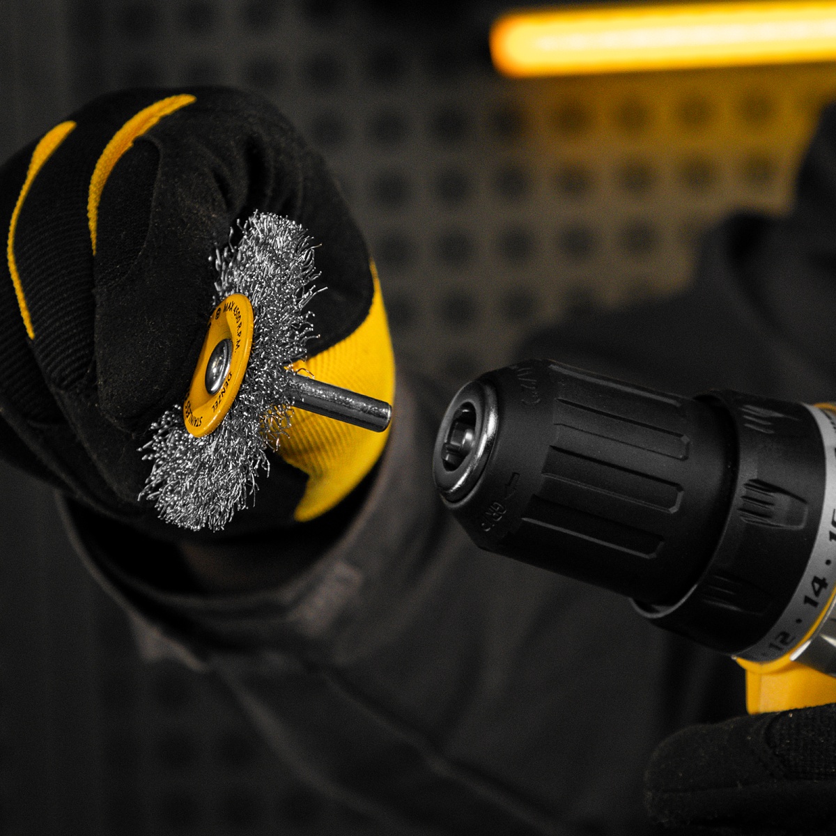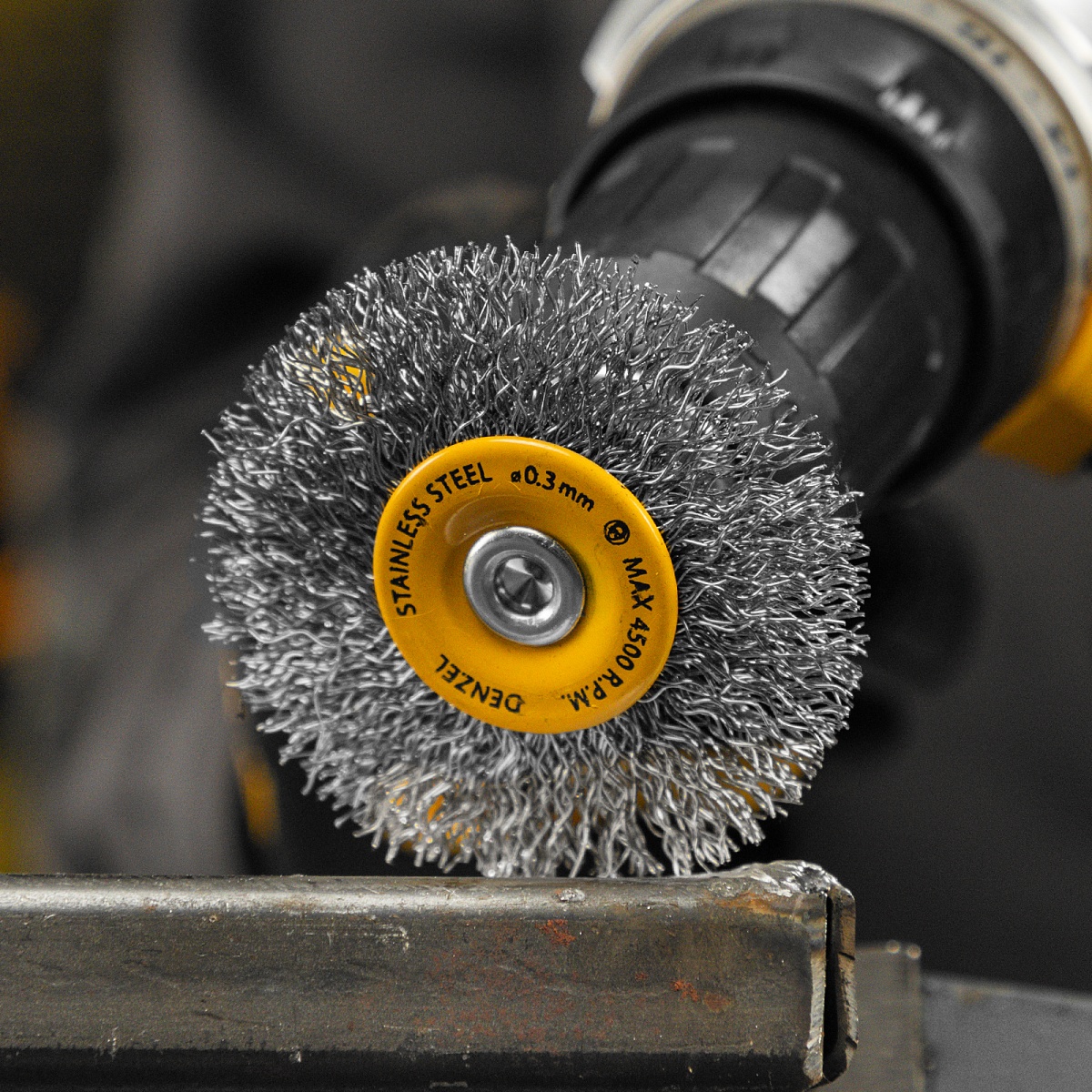 Наличие клапана для сброса давления Щетка для дрели, 50 мм, Плоская, со шпилькой, нержавеющая витая проволока Denzel