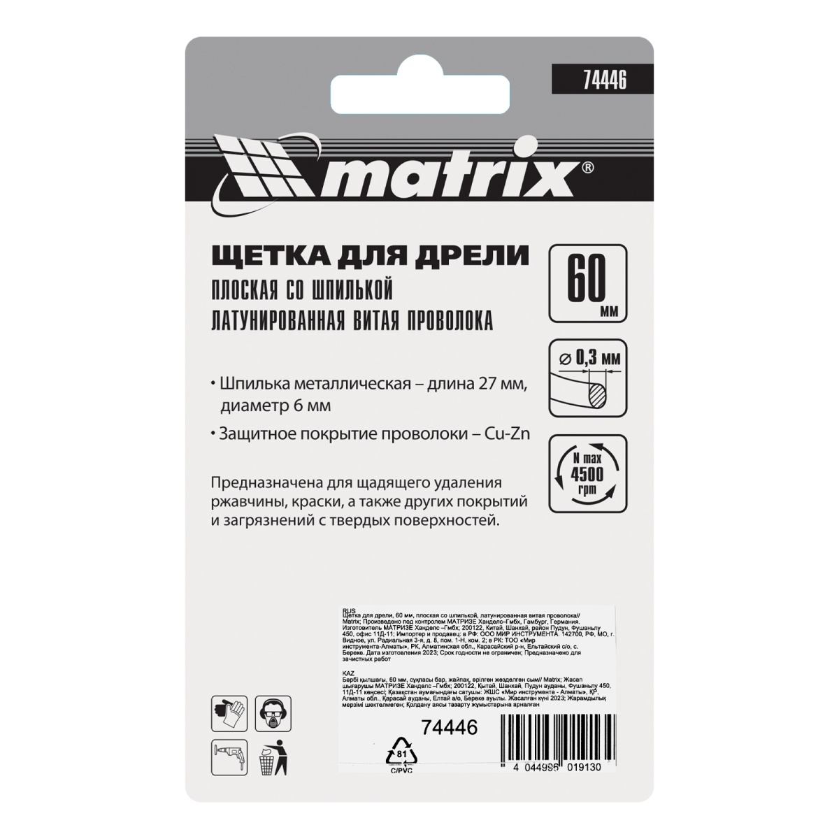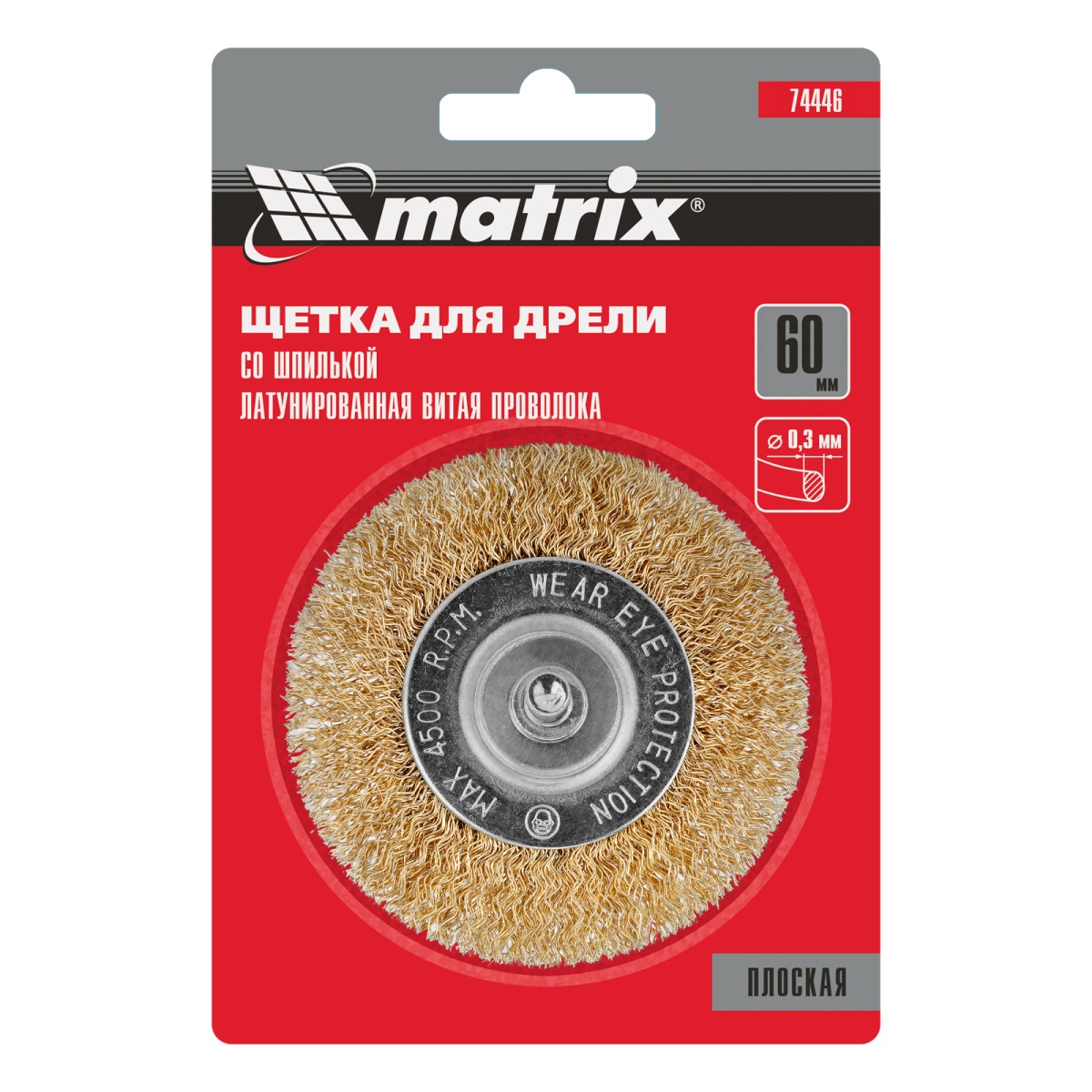 Купить Щетка для дрели, 60 мм, плоская со шпилькой, латунированная витая проволока Matrix V8050 по лучшей цене с доставкой - интернет магазин №1 в России