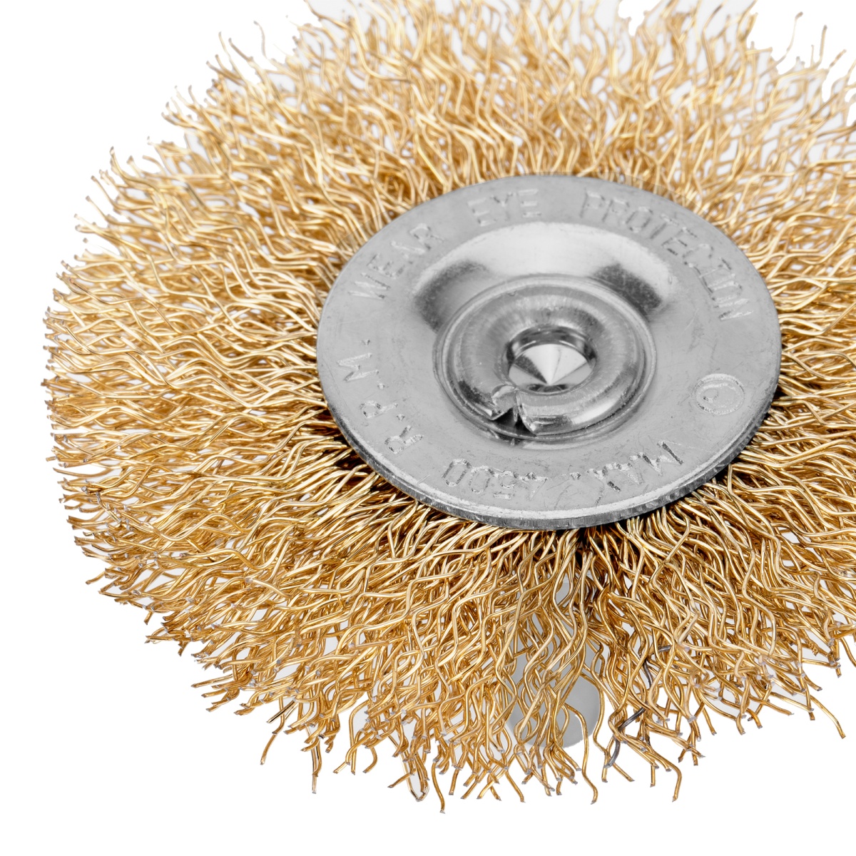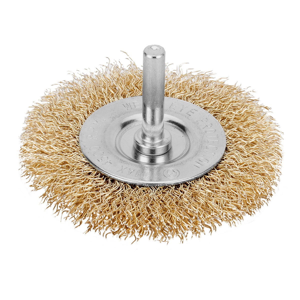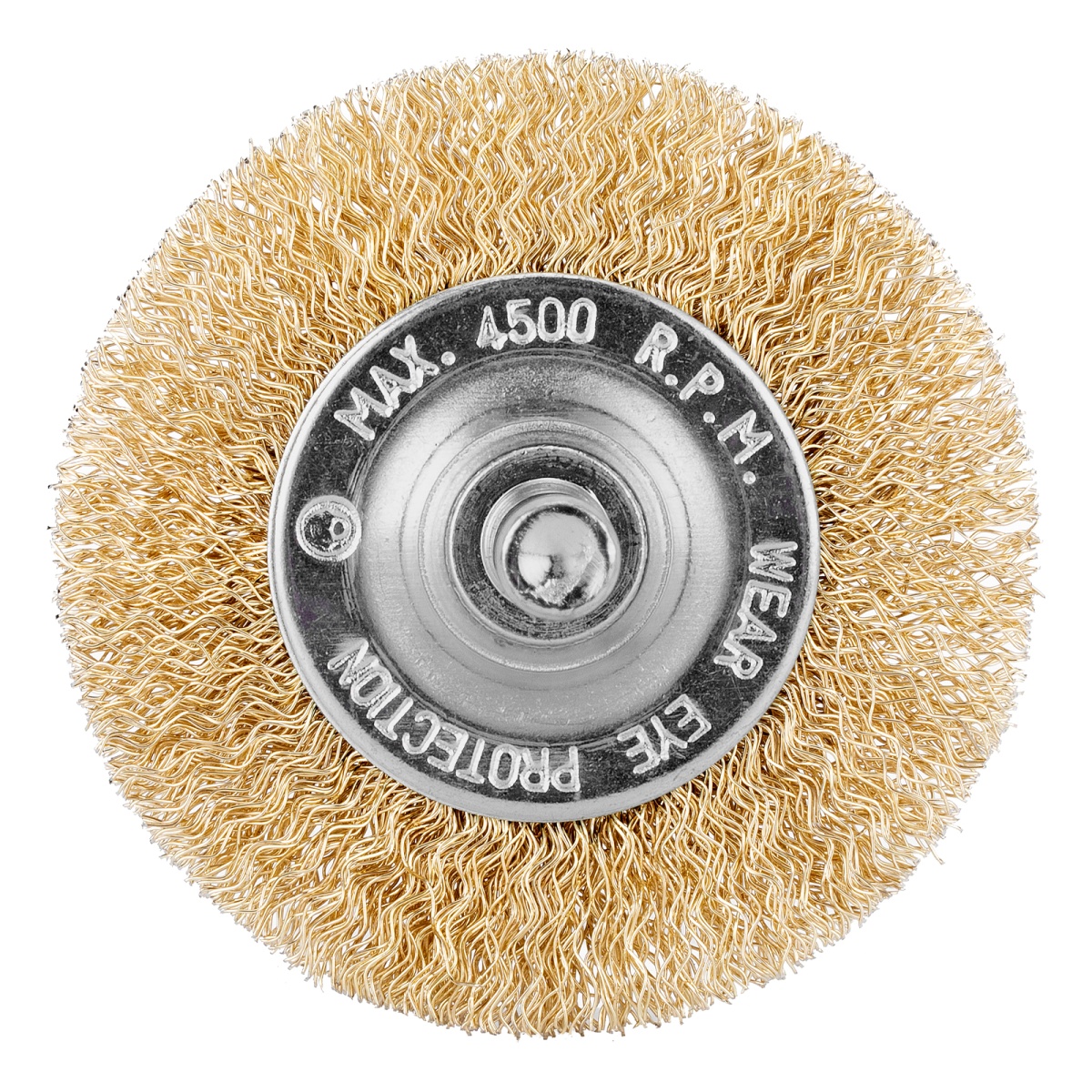 Наличие клапана для сброса давления Щетка для дрели, 60 мм, плоская со шпилькой, латунированная витая проволока Matrix