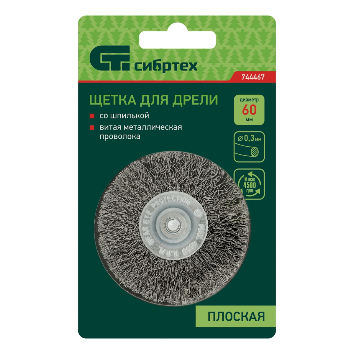 Наличие клапана для сброса давления Щетка для дрели, 60 мм, плоская со шпилькой, витая проволока Сибртех