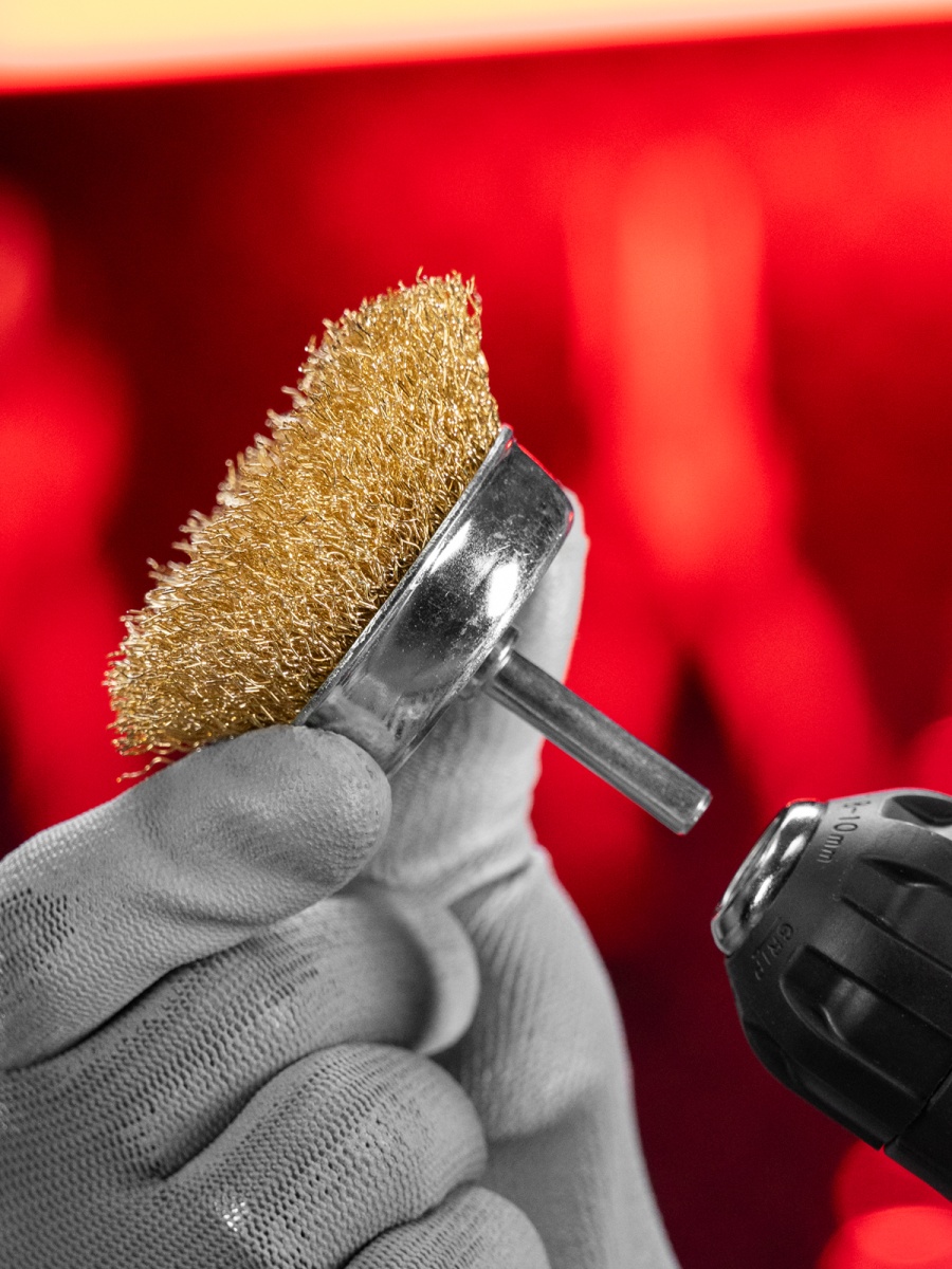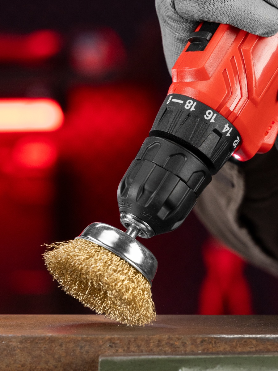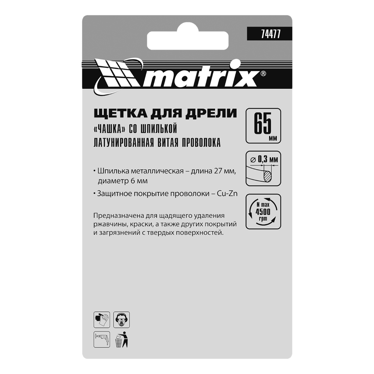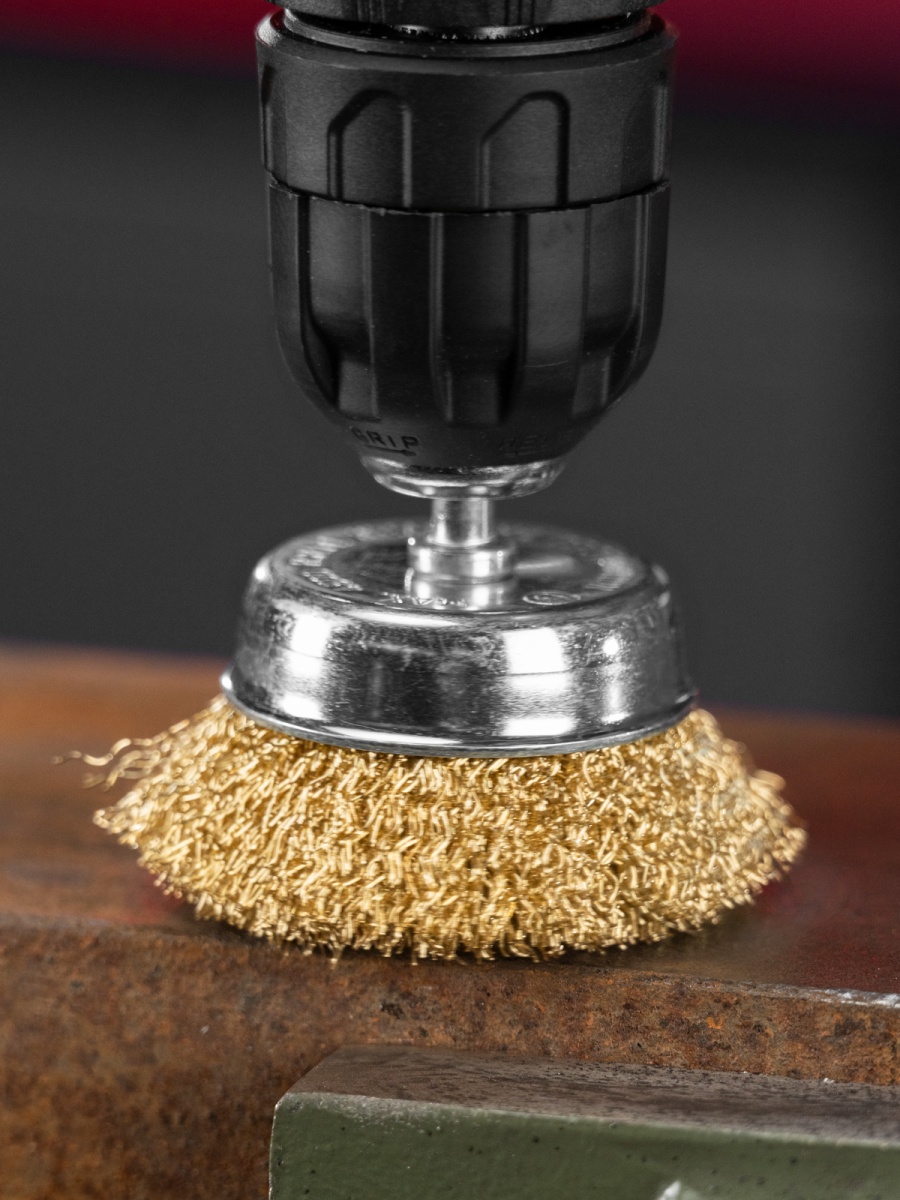 Наличие клапана для сброса давления Щетка для дрели, 65 мм, "чашка" со шпилькой, латунированная витая проволока Matrix