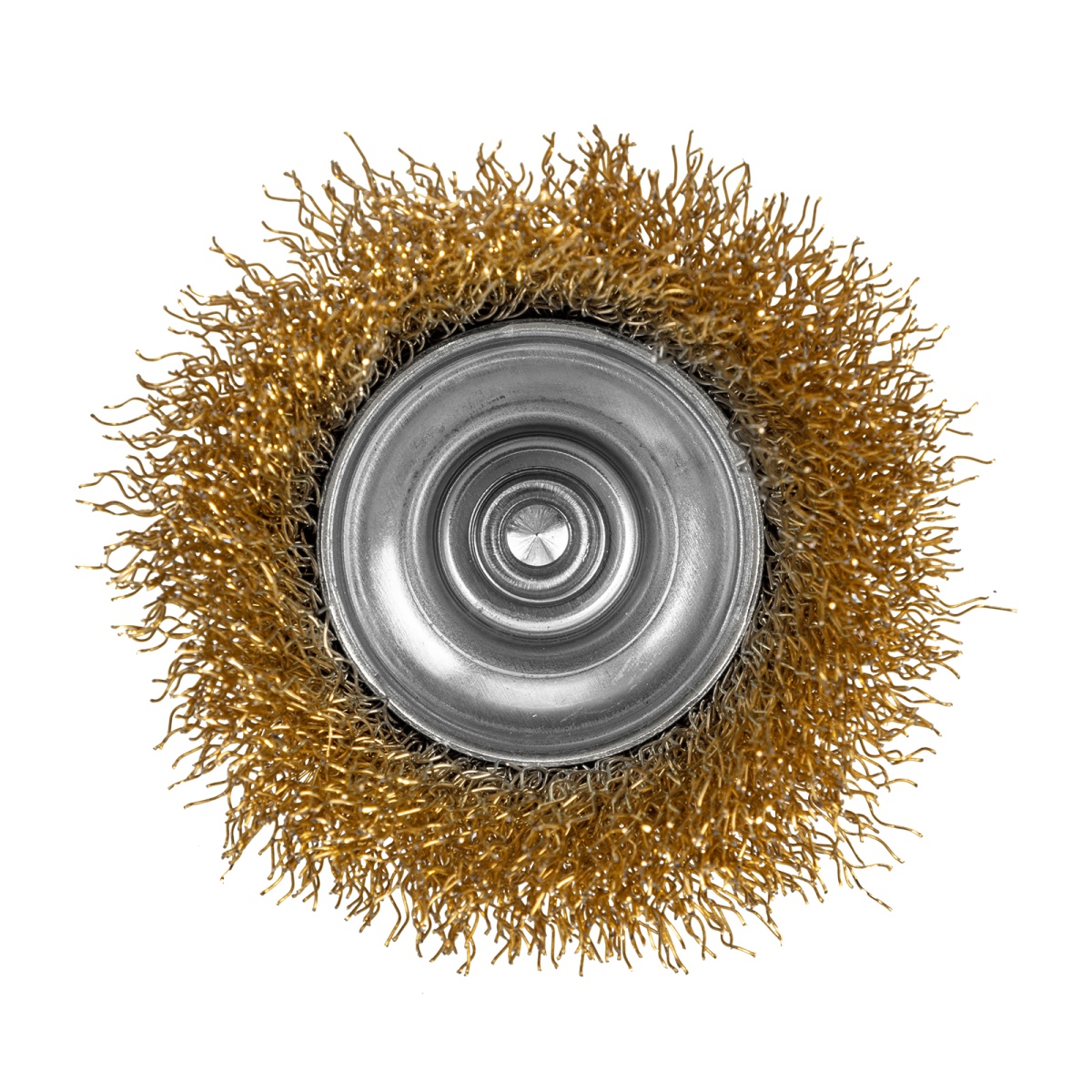 Купить Щетка для дрели, 65 мм, "чашка" со шпилькой, латунированная витая проволока Matrix V8054 по лучшей цене с доставкой - интернет магазин №1 в России