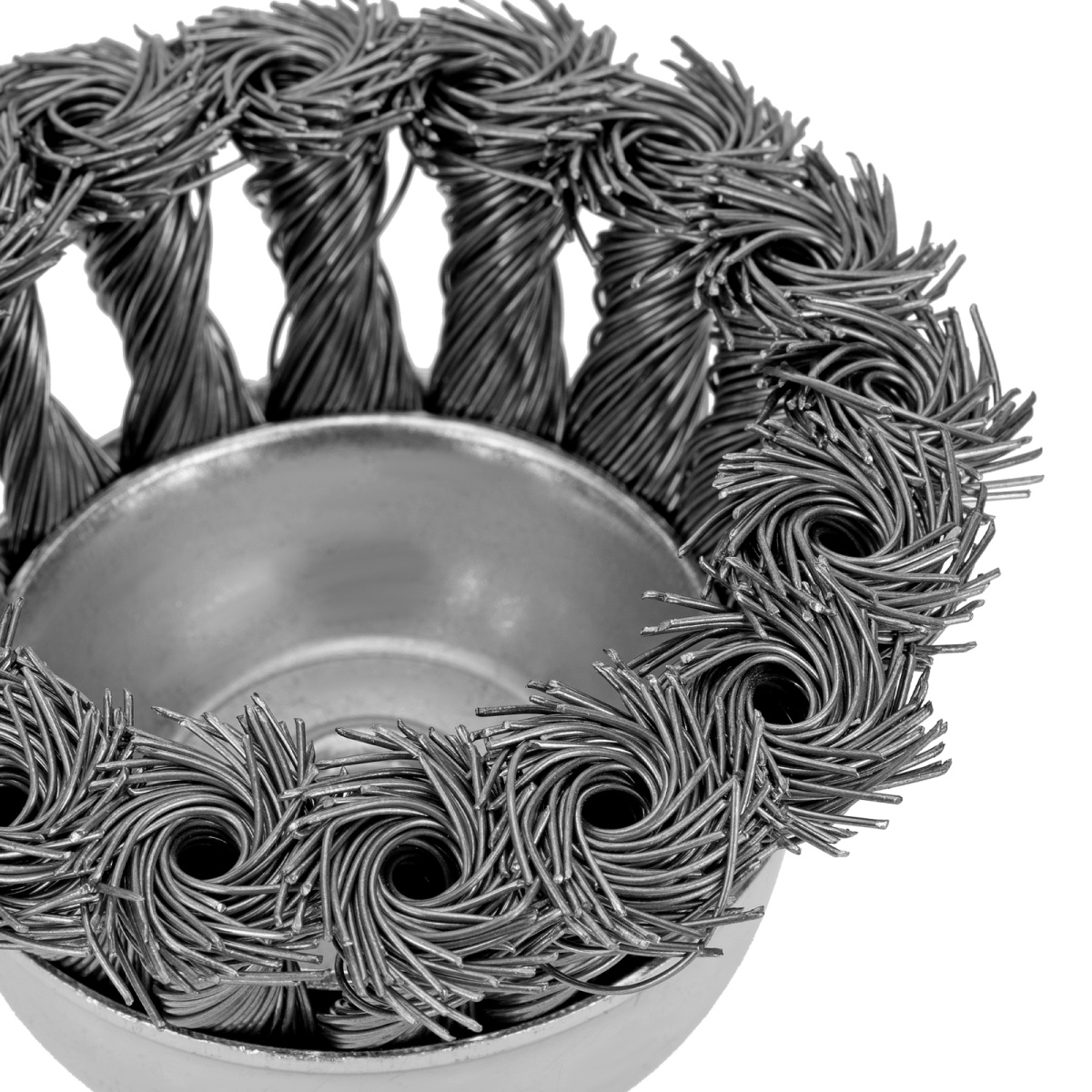 Наличие клапана для сброса давления Щетка для дрели, 75 мм, "чашка" со шпилькой, крученая металлическая проволока Matrix
