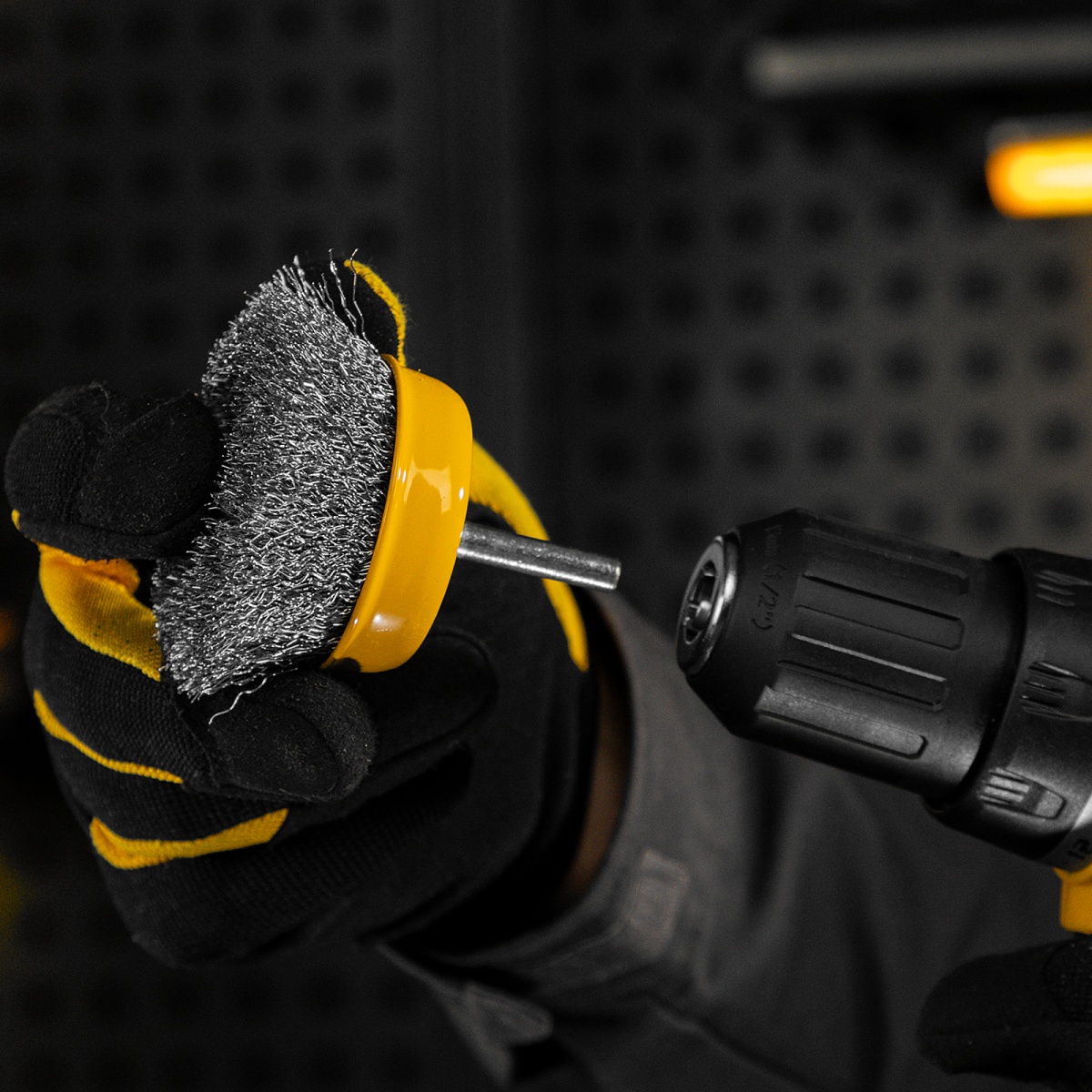 Наличие клапана для сброса давления Щетка для дрели, 75 мм, Чашка, со шпилькой, нержавеющая витая проволока Denzel