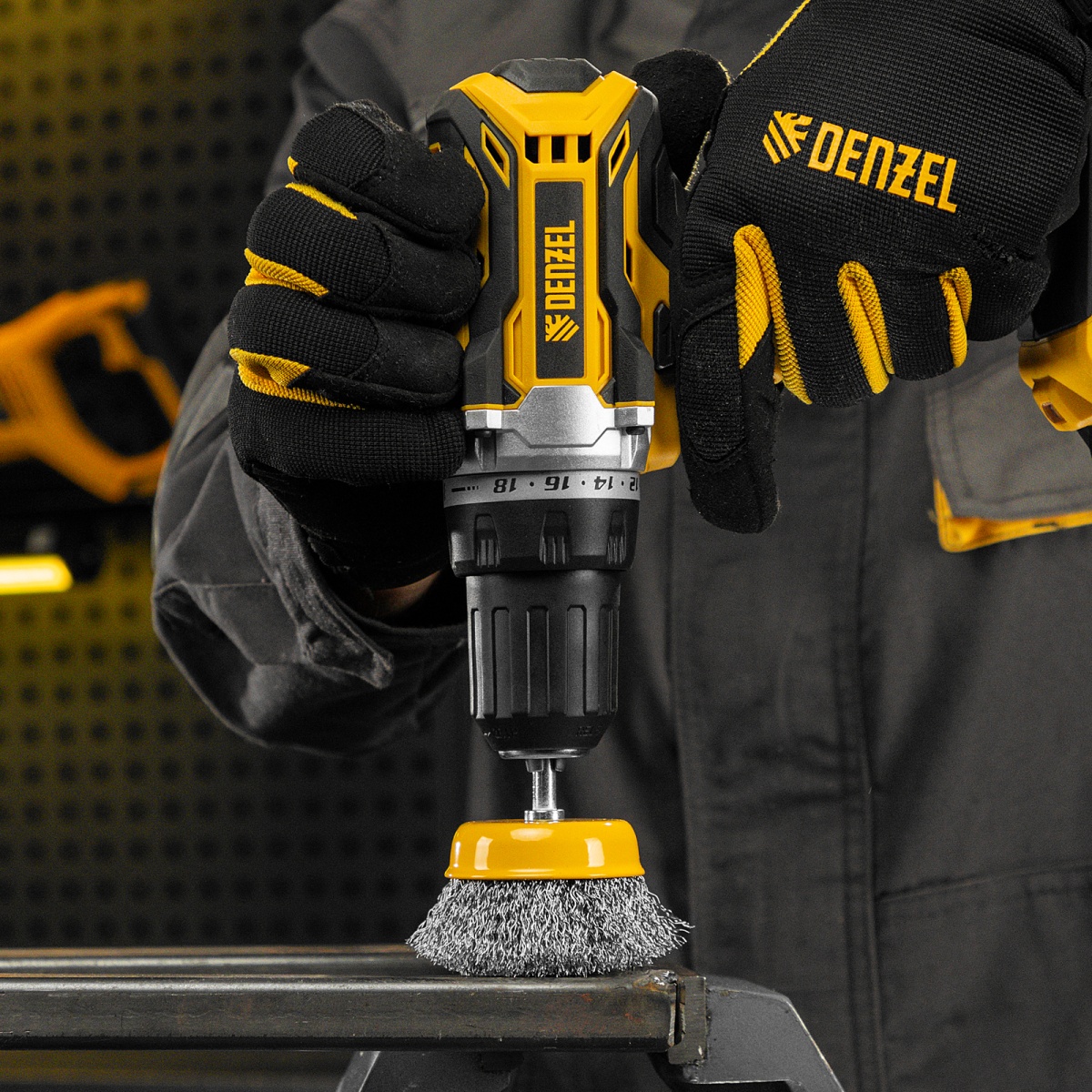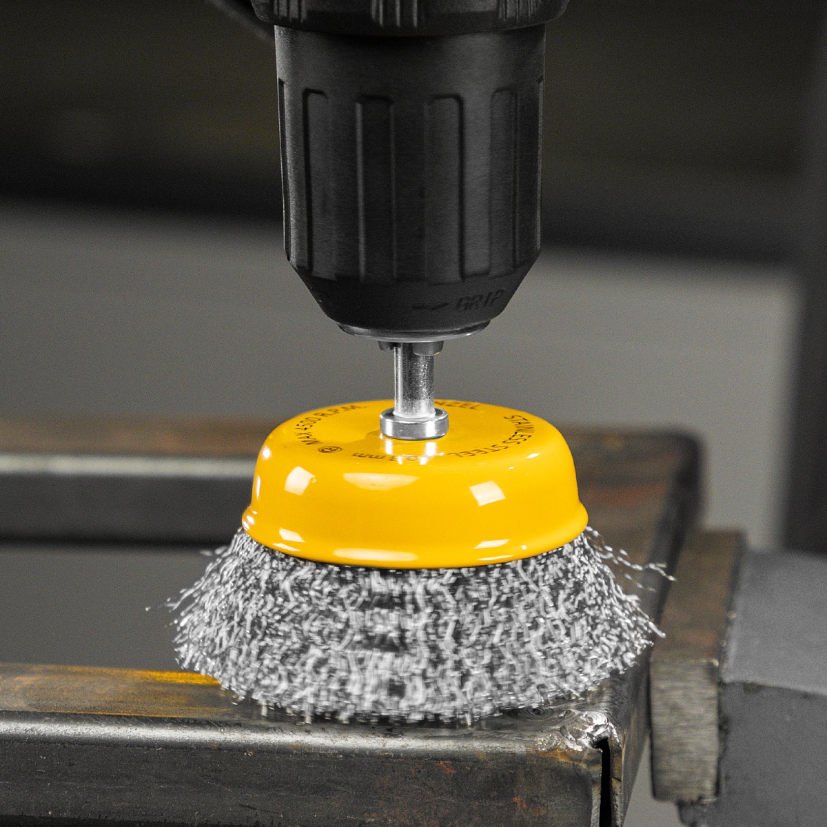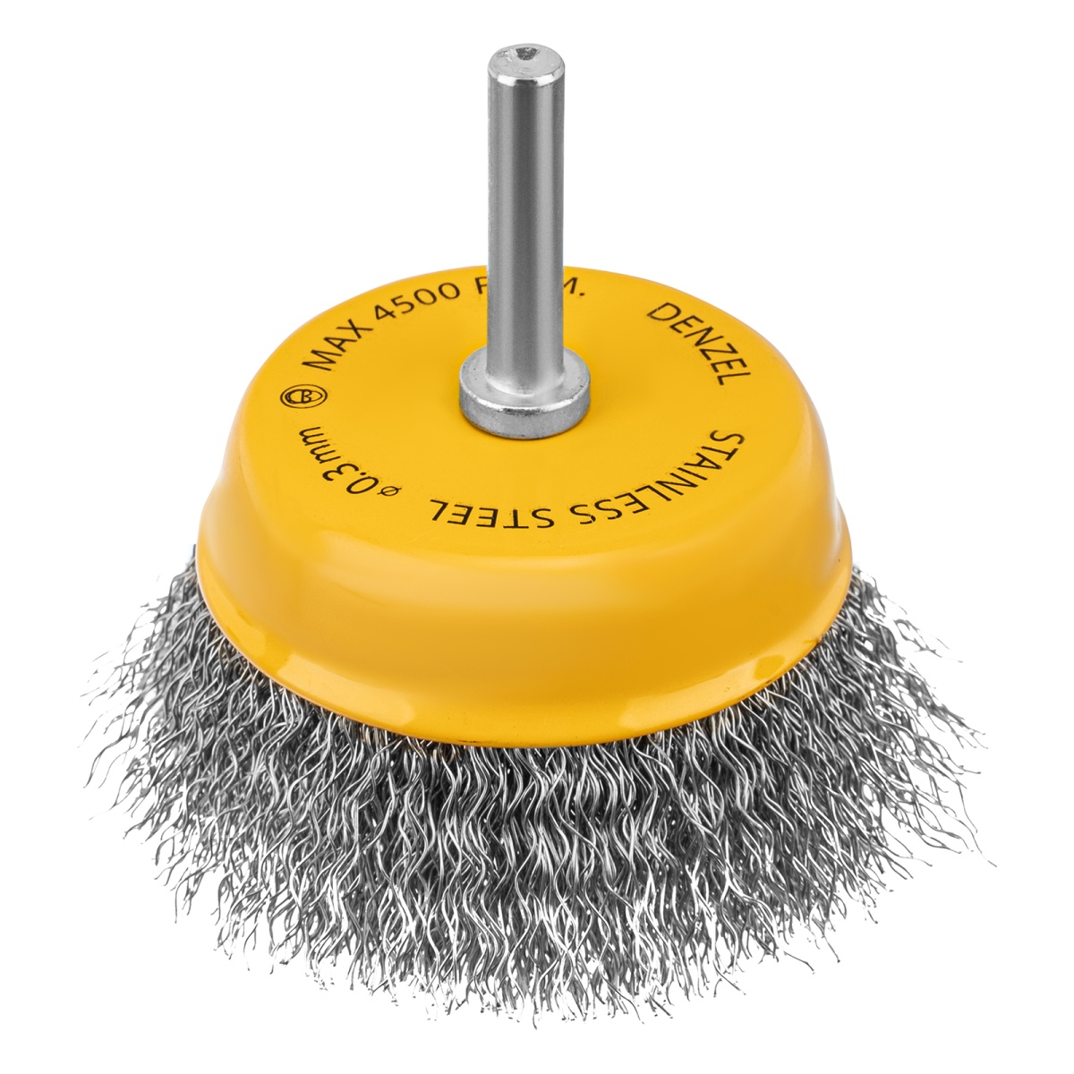 Щетка для дрели, 75 мм, Чашка, со шпилькой, нержавеющая витая проволока Denzel