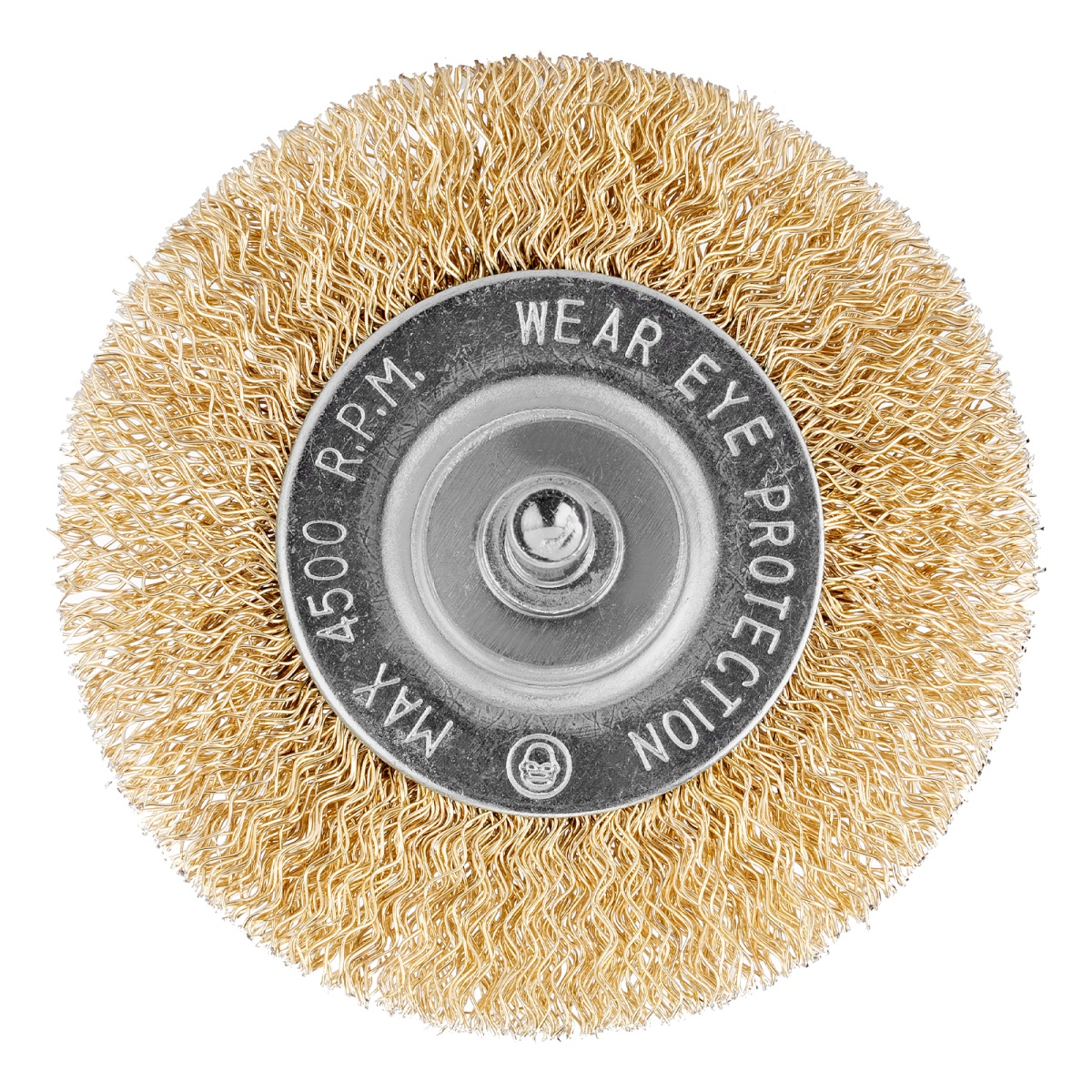 Наличие клапана для сброса давления Щетка для дрели, 75 мм, плоская со шпилькой, латунированная витая проволока Matrix