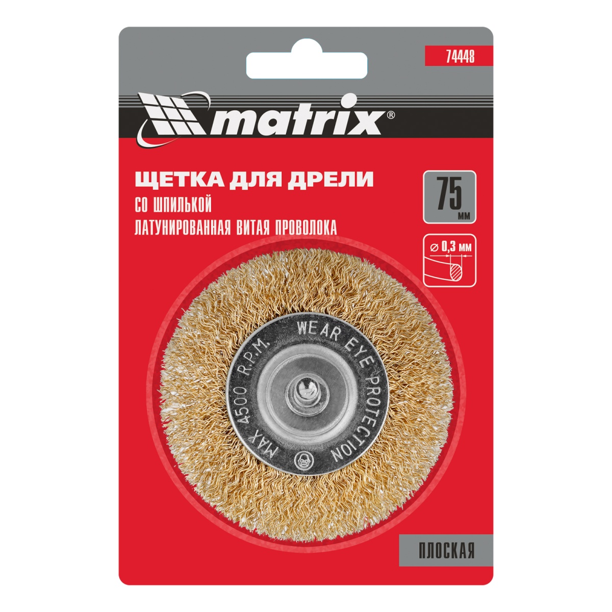 Купить Щетка для дрели, 75 мм, плоская со шпилькой, латунированная витая проволока Matrix V8062 по лучшей цене с доставкой - интернет магазин №1 в России