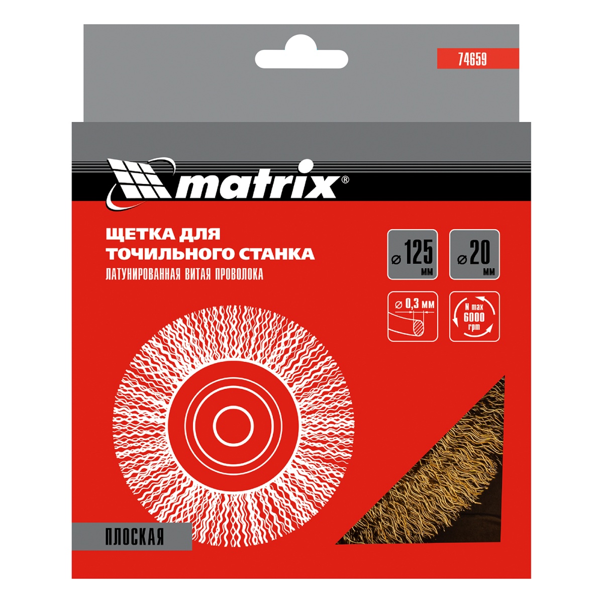 Купить Щетка для точила, 125 мм, посадка 20 мм, плоская, латунированная витая проволока Matrix V8067 по лучшей цене с доставкой - интернет магазин №1 в России